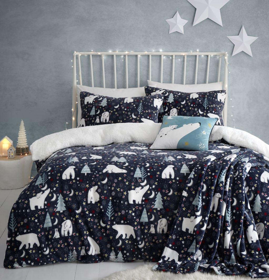 A cute family of polar bears stroll happily across this stunning night-time scene bedding from Fusion. Printed on to an incredibly soft and cosy fleece fabric this duvet cover set will look sensational on any bed. So comfy, you’ll never want to get out of of bed.