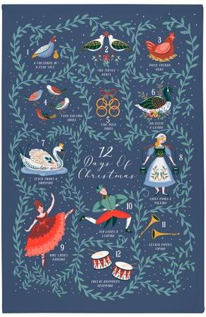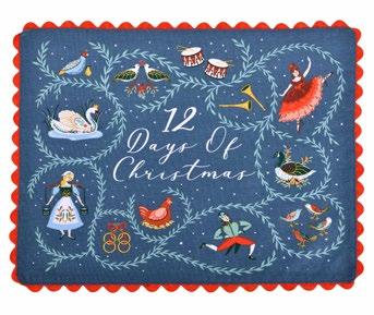 The “12 Days of Christmas” design recreates the classic Christmas song, drawing inspiration from illustrations found in beloved Christmas storybooks. This enchanting collection features rich holiday colours, including berry red, navy, and golden yellow, evoking a sense of nostalgia and warmth. The design beautifully captures the magic of the season, making it a perfect addition to festive celebrations.