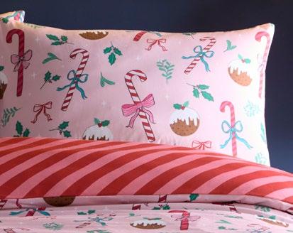 Fusion’s Festive Fancy duvet set is here to sweeten the season with its pastel-wrapped print and reversible bright stripes. Brimming with festive flair and made from sustainable polycotton, this modern design adds conscious yet playful style to your Yule-loving décor.
