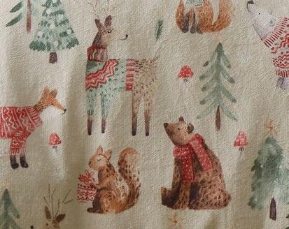 Festive cuteness meets cosy luxury! Adorned with hand-painted cute robins, this duck egg fabric is as plush as can be. And for a touch of extra softness, the reverse side is crafted with a plain sherpa material. Get ready to snuggle up in style and dive into a winter wonderland of comfort.