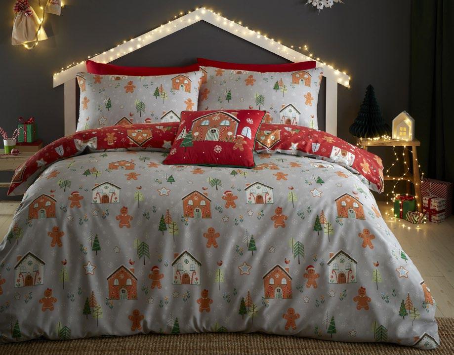 Mr and Mrs Gingerbread are excitedly getting ready for Christmas on this fabulously festive bedding from Bedlam. Printed on to an easy care poly cotton fabric, this bedding set includes the pillowcase(s) and will add a Christmas touch to your ho ho home.