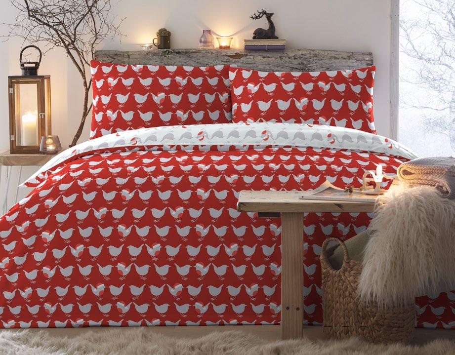 Fun and festive little robins hop happily across this fabulous easy care Christmas bedding set. Fully reversible for two great looks in one and with pillowcase(s) included in the set, this bedding is sure to bring festive cheer to any bedroom.