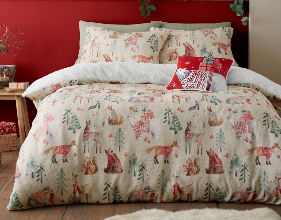 Get set for a festive bedroom makeover with this fabulous duvet set from Fusion. Woodland friends meet up to swap gifts on this stunning bedding set. Printed onto a soft touch plush fabric, the reverse is made from a sherpa fleece for the ultimate in cosiness and comfort.