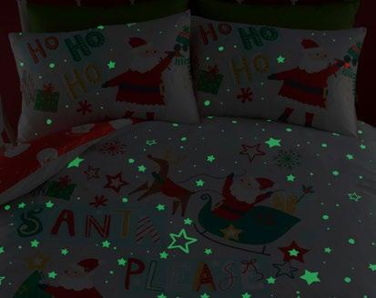 This delightful set features a playful design with “Santa Please Stop Here” across the bedding, all set against a chic grey background. Made from an easy care fabric, it ensures both comfort and convenience. As an extra special touch, the duvet cover is adorned with glow-in-the-dark stars, creating a magical atmosphere when the lights go out.