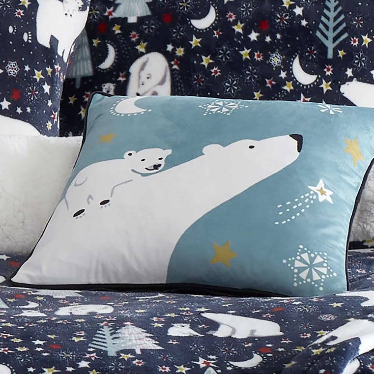 A cute family of polar bears stroll happily across this stunning nighttime scene bedding from Fusion. Printed on to an incredibly soft and cosy fleece fabric this duvet cover set will look sensational on any bed. So comfy, you’ll never want to get out of of bed.