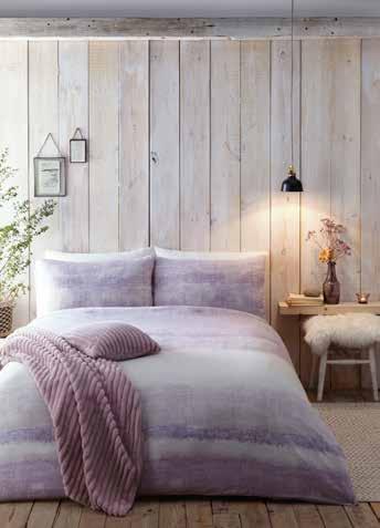 Immerse yourself in the breathtaking beauty of the blue and purple watercolour floral print, elegantly framed by a mauve border. The striped reverse adds an element of sophistication to this enchanting design. Crafted from luxurious 200 thread count cotton sateen.