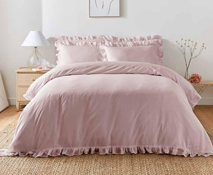 Plain dye embellished, sold in sets Single, Double, King, Superking 100% BCI cotton, frilled edging