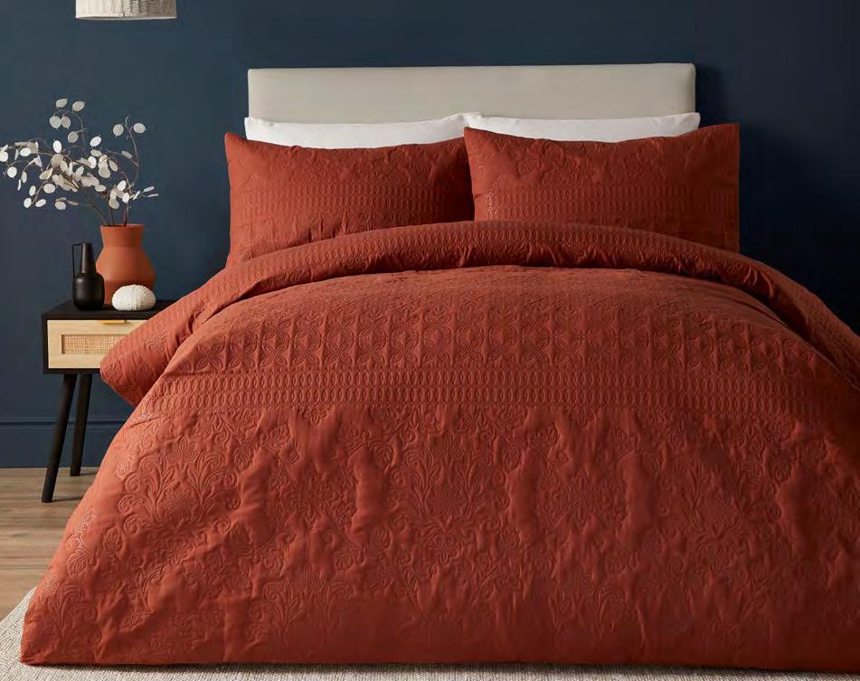 Add a touch of classic elegance with this delightful Appletree bedding set. Featuring an ornate damask print in rich autumnal hues, this 100% BCI cotton sateen set brings a soft, heritage feel to every cosy evening in.