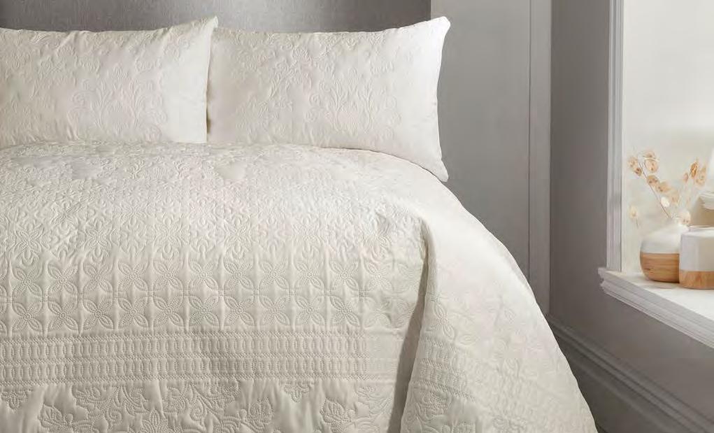 For timeless tranqulity, the stunning Toria bedding from Appletree is an effortless choice, with a luxurious jacquard design in soft, classic tones. Made from 100% GRS recycled polyester, this heritage-inspired set blends sustainable comfort with a refined floral charm.