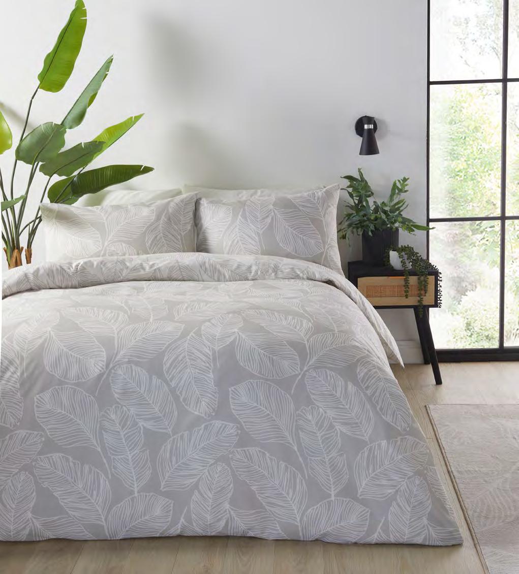 Elevate your space with Carmen by Appletree. This dynamic duvet cover set features a bold silhouette leaf print on a soft 100% cotton base. The contrasting green reverse adds versatility. Redefine modern elegance with Carmen.