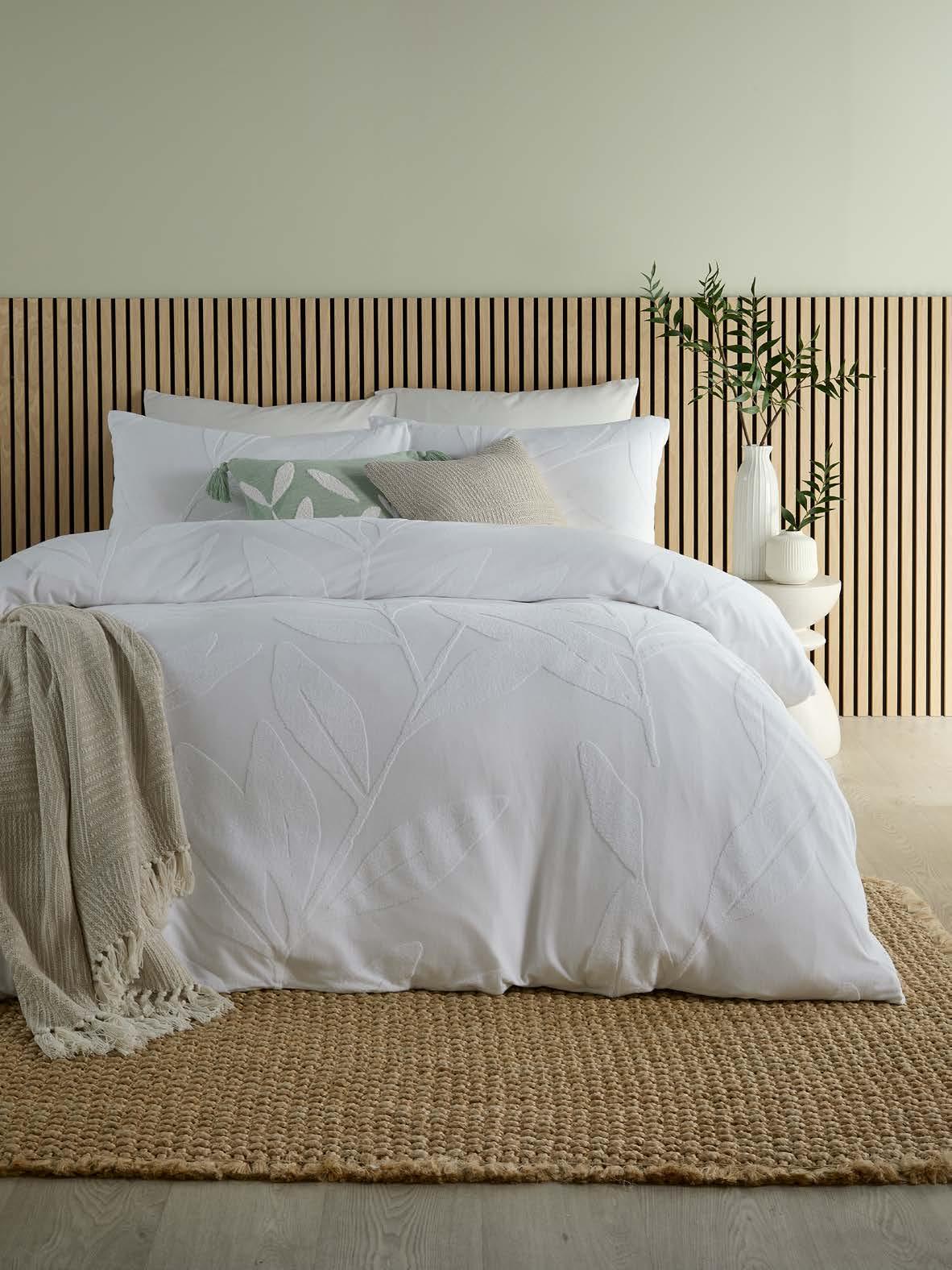 Designed for calm, considered living, the Tufted Leaf duvet cover set brings subtle texture to your sanctuary. A bold leaf motif is delicately tufted into a cotton-rich blend, creating a look that feels modern and soothing. Finished in versatile shades and with a jersey blend reverse, it’s a timeless choice for adding quiet luxury to relaxed bedrooms.