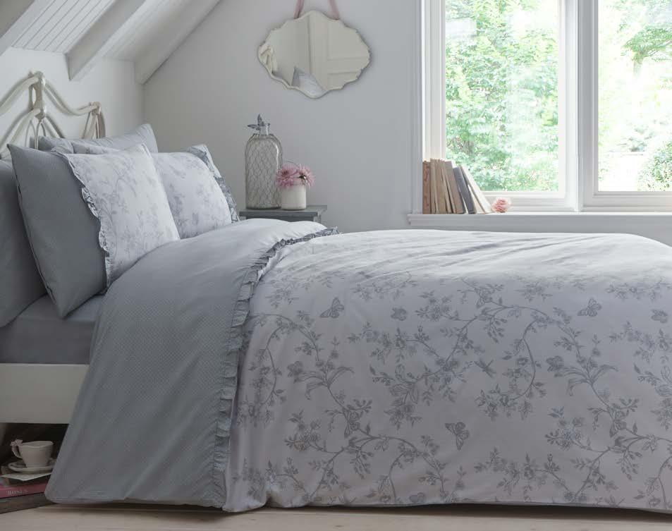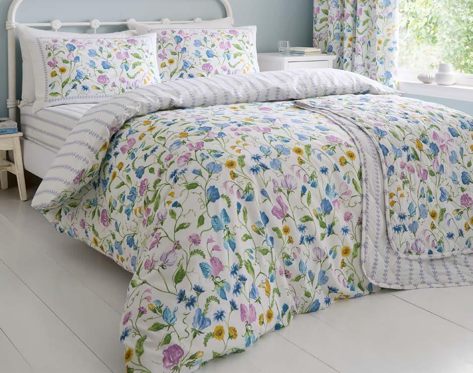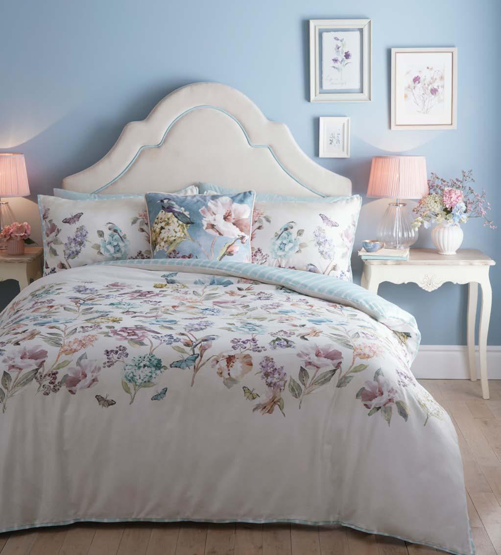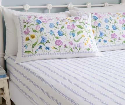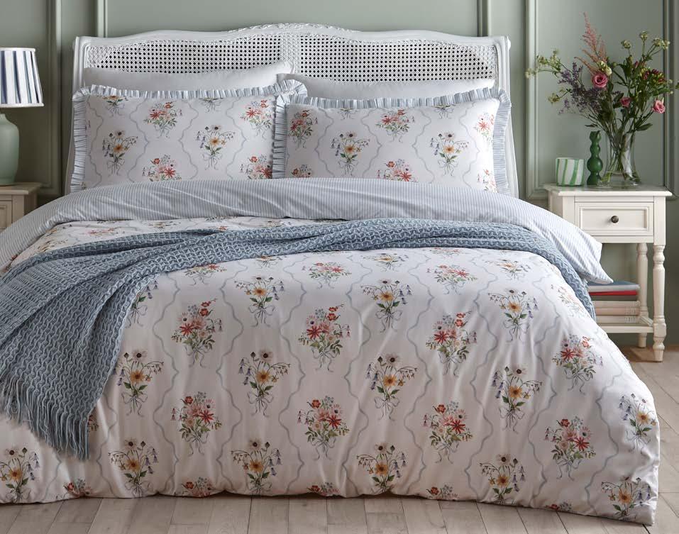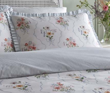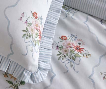 Experience timeless elegance with our 100% cotton Floral Bouquet bedding, featuring delicate hand-painted floral posies framed by a powder blue trellis against ivory. Reversing to classic blue pinstripes, it’s finished with ruffled pillowcases, this set brings elegant British charm straight to your bedroom.