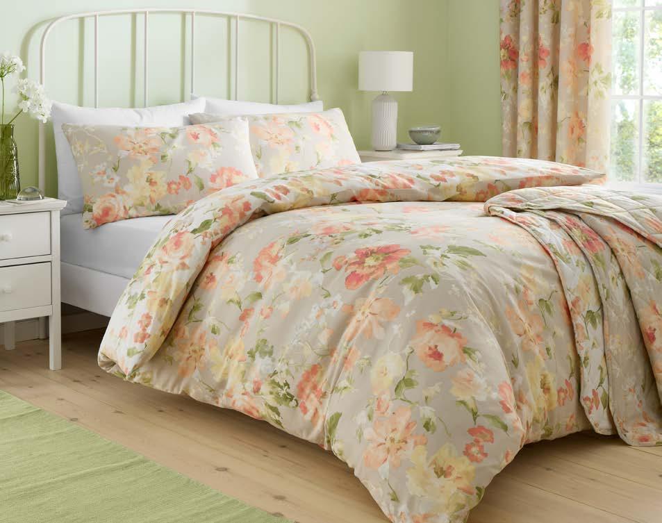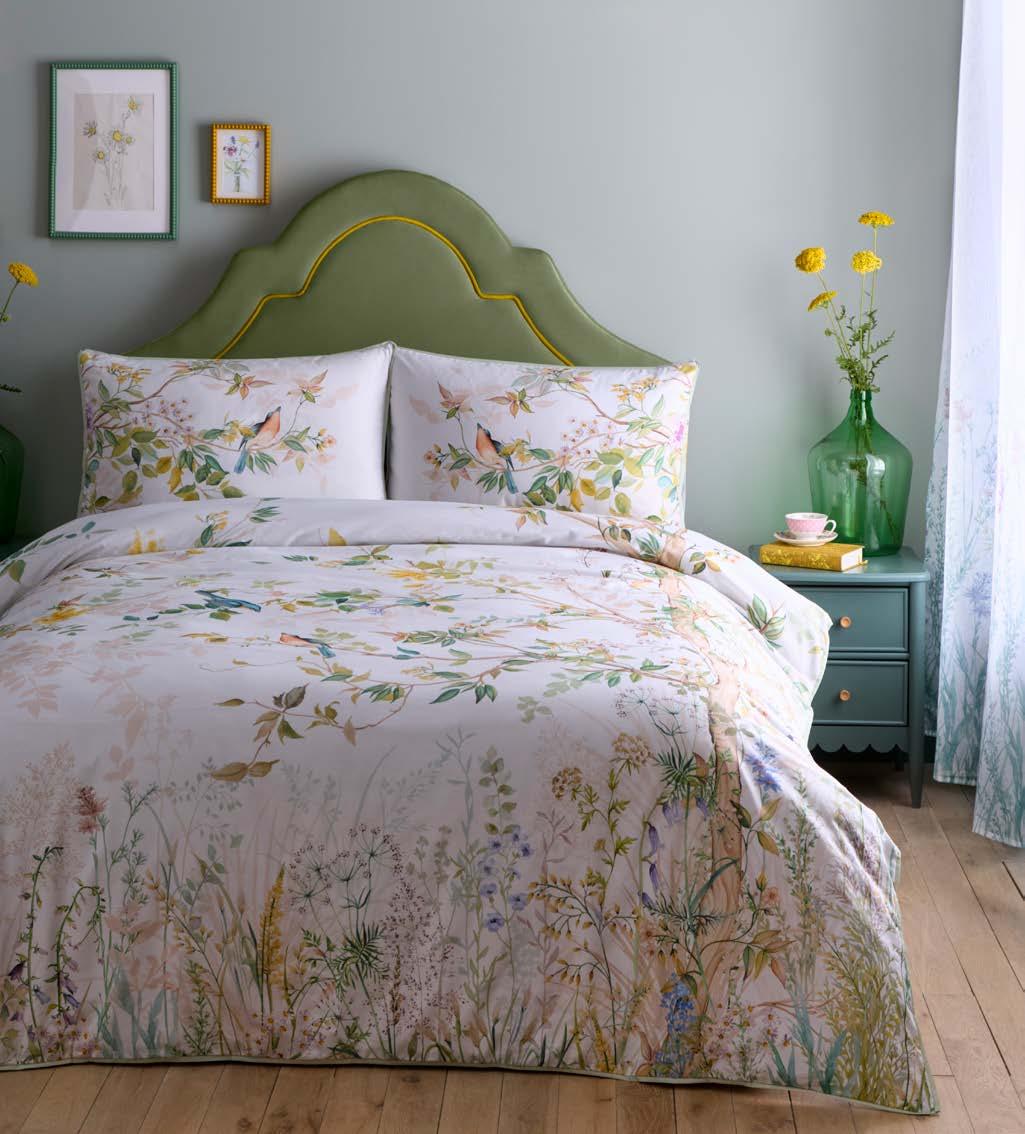 Indulge in the tranquil beauty of the Appletree duvet cover set, Arianna. Picture a country garden foliage print delicately adorning a luxurious 200 thread count cotton base in natural hues, whispering tales of elegance and sophistication into your bedroom decor.