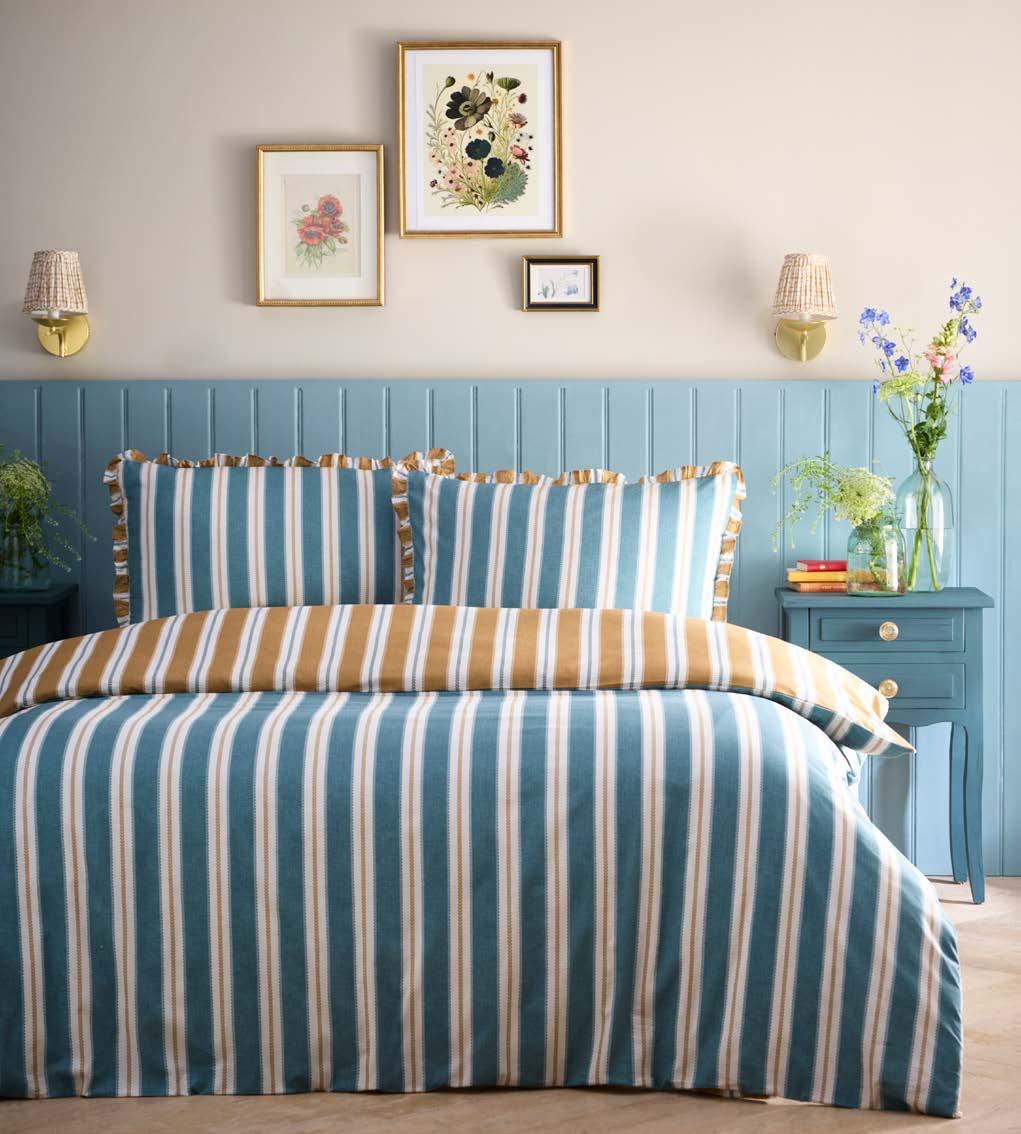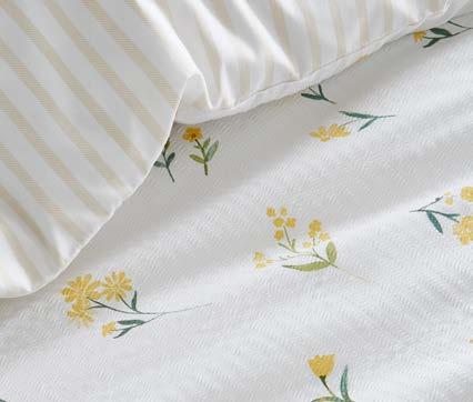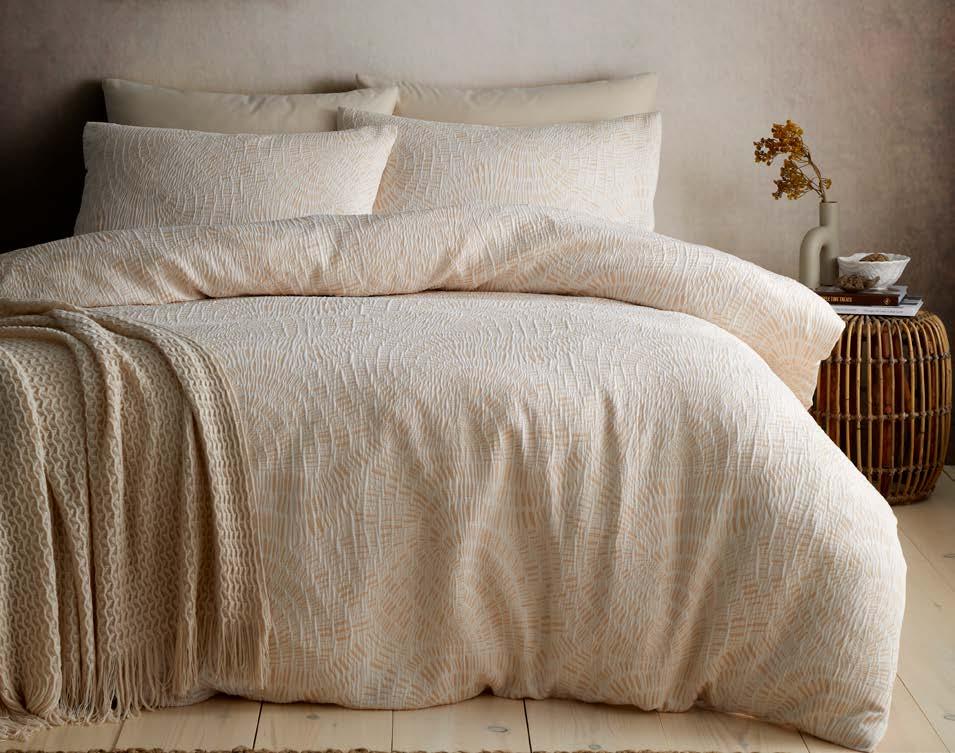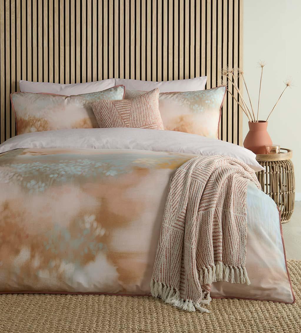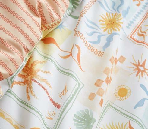 We’ve expanded our fabrication offer with qualities that focus on texture and handle, including printed seersuckers, double-layer jacquards, and woven yarn-dyed stripes. Responding to strong demand for elevated product, we’ve introduced exquisite luxe jacquards. Our accessories, including cushions and throws, are thoughtfully curated to layer effortlessly across collections, offering coordinated options that allow customers to create a complete, beautifully styled look with ease.