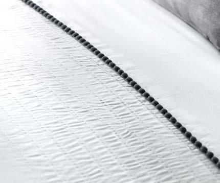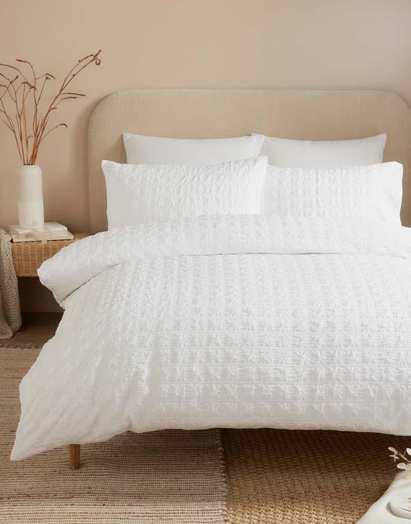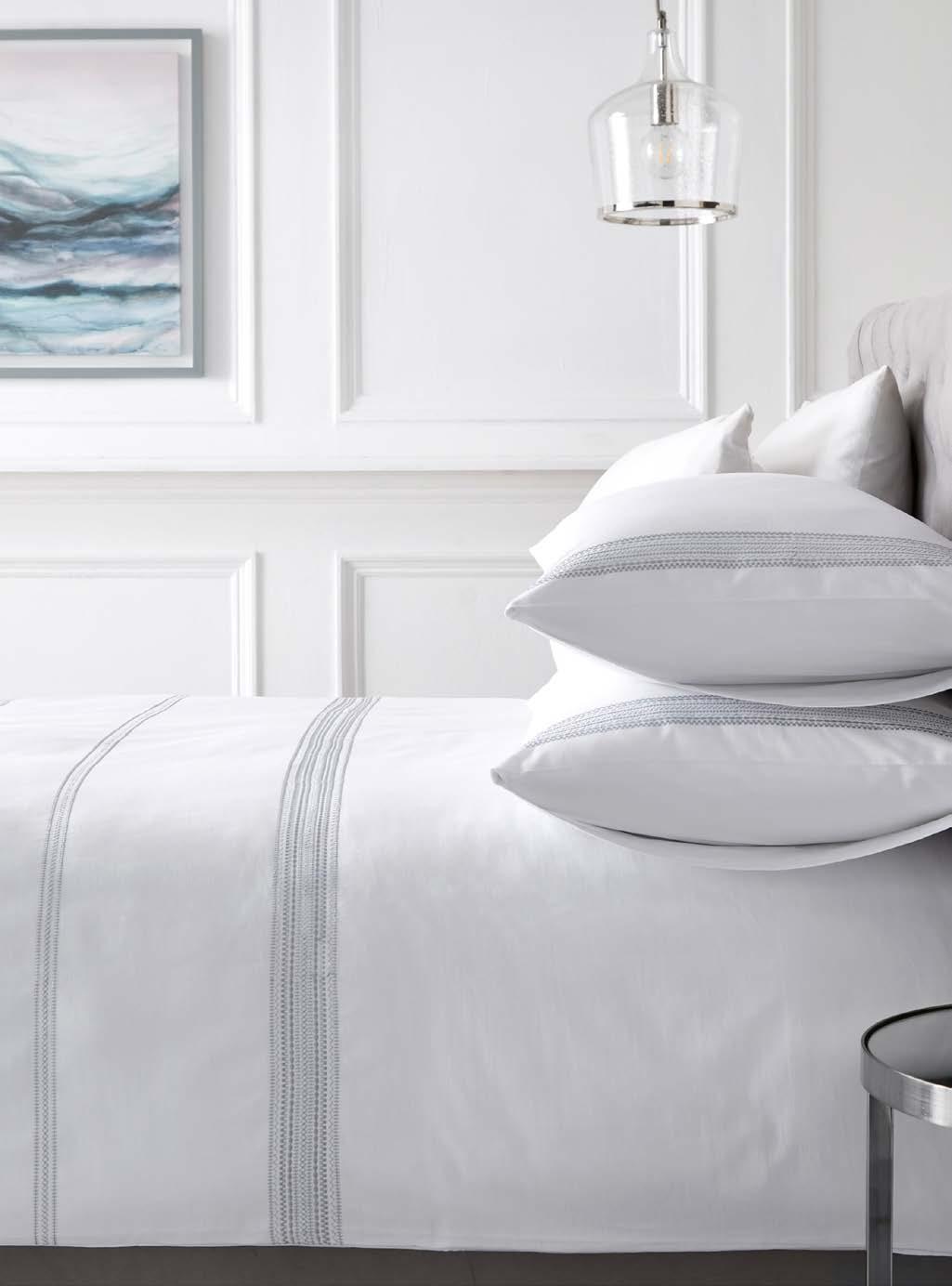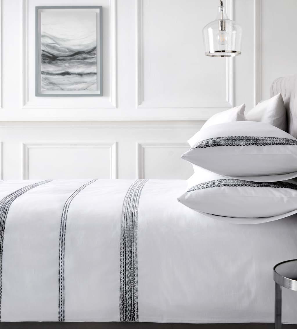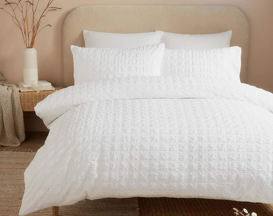 We’ve expanded our fabrication offer with qualities that focus on texture and handle, including printed seersuckers, double-layer jacquards, and woven yarn-dyed stripes. Responding to strong demand for elevated product, we’ve introduced exquisite luxe jacquards. Our accessories, including cushions and throws, are thoughtfully curated to layer effortlessly across collections, offering coordinated options that allow customers to create a complete, beautifully styled look with ease.