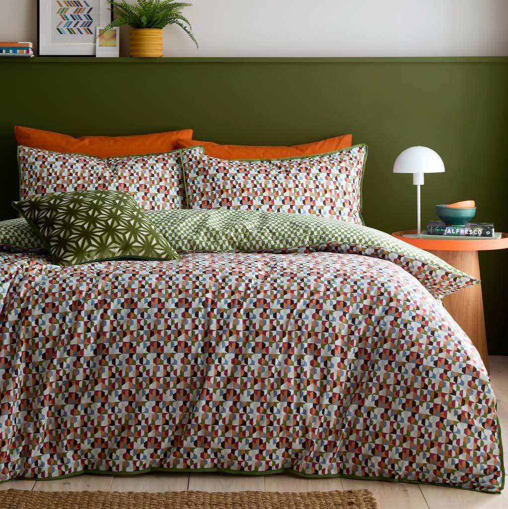 Add bold retro charm to your bedroom with the Appletree Star Geo duvet cover set. Lashings of modern sophisticated geometric tiles in rich tones, plus a green geometric reverse. Made from 100% cotton with flat piped edging for a crisp, tailored finish. Stylish, breathable comfort for a stand-out look.