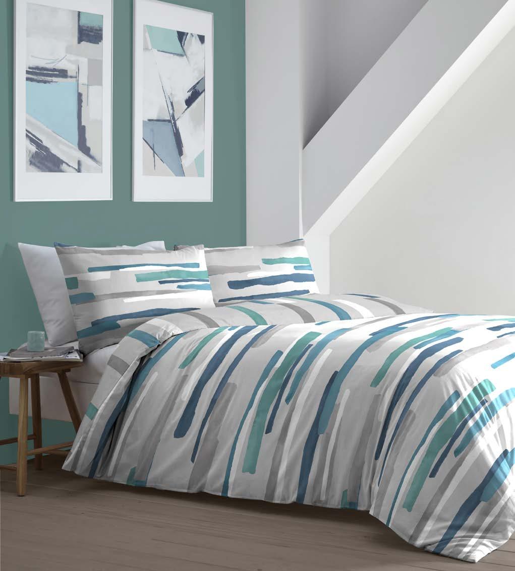 Beautifully designed and gorgeously comfy. This watercolour stripe has been painted in this season’s must have colours and has been created using 100% soft brushed cotton. A bedding set that is guaranteed to leave you longing to stay under the covers for just a little while longer.