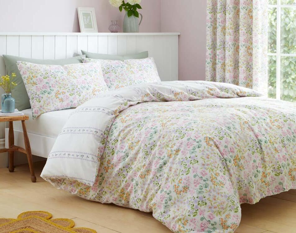 Envelop your bedroom in gentle artistry with the Abstract Floral duvet cover set. Crafted from 100% breathable cotton, its soft watercolour florals in pastel hues rest upon a serene sage canvas. The reversible design reveals a subtle leaf motif, while flat piped edging ensures a refined, tailored finish.