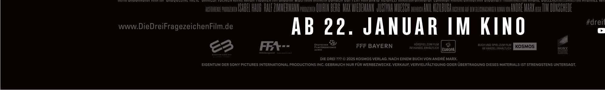DIE DREI ??? – ERBE DES DRACHEN und DIE DREI ??? UND DER KARPATENHUND haben gemeinsam fast 200.000 Schweizerinnen und Schweizer dazu animiert, sich ins Kino zu setzen – die Erfolgswelle wird nun mit dem dritten Teil dieser neuen Trilogie fortgeführt, wo das titelgebende Detektiv-Trio auf einer Vulkaninsel ermittelt.