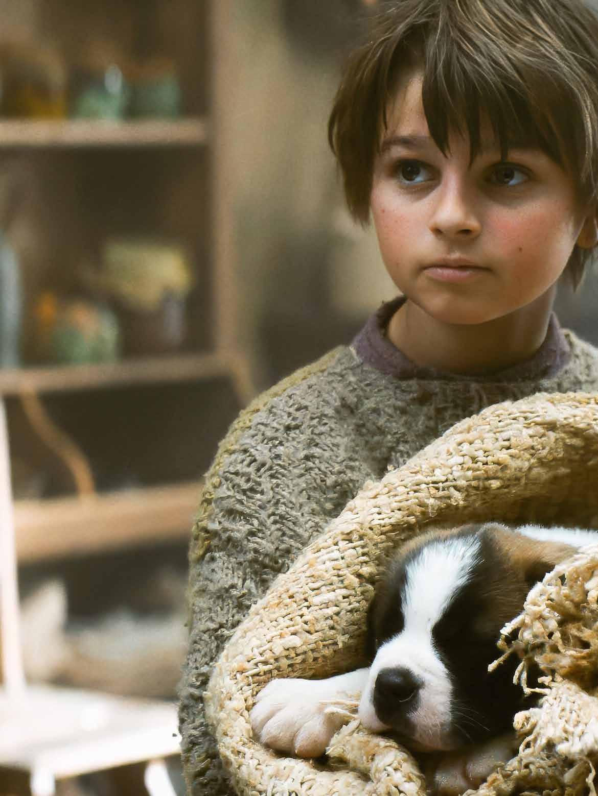 Das bewegende Werk handelt vom 12-jährige Georg und seinem älteren Bruder Alfons, Kriegswaisen aus der Innerschweiz, die auf dem beschwerlichen Weg über den Grossen Sankt Bernhard sind und in Italien ihr Glück suchen wollen. Als Georg krank wird, lässt Alfons ihn im Hospiz zurück. Dort kämpft Georg gegen die Vorurteile der Novizen, insbesondere des Anführers Célestin. Eine zarte Freundschaft mit Resi, der Tochter des Hundeführers, hilft ihm, seine Schüchternheit zu überwinden. Georg päppelt heimlich einen schwächlichen Welpen