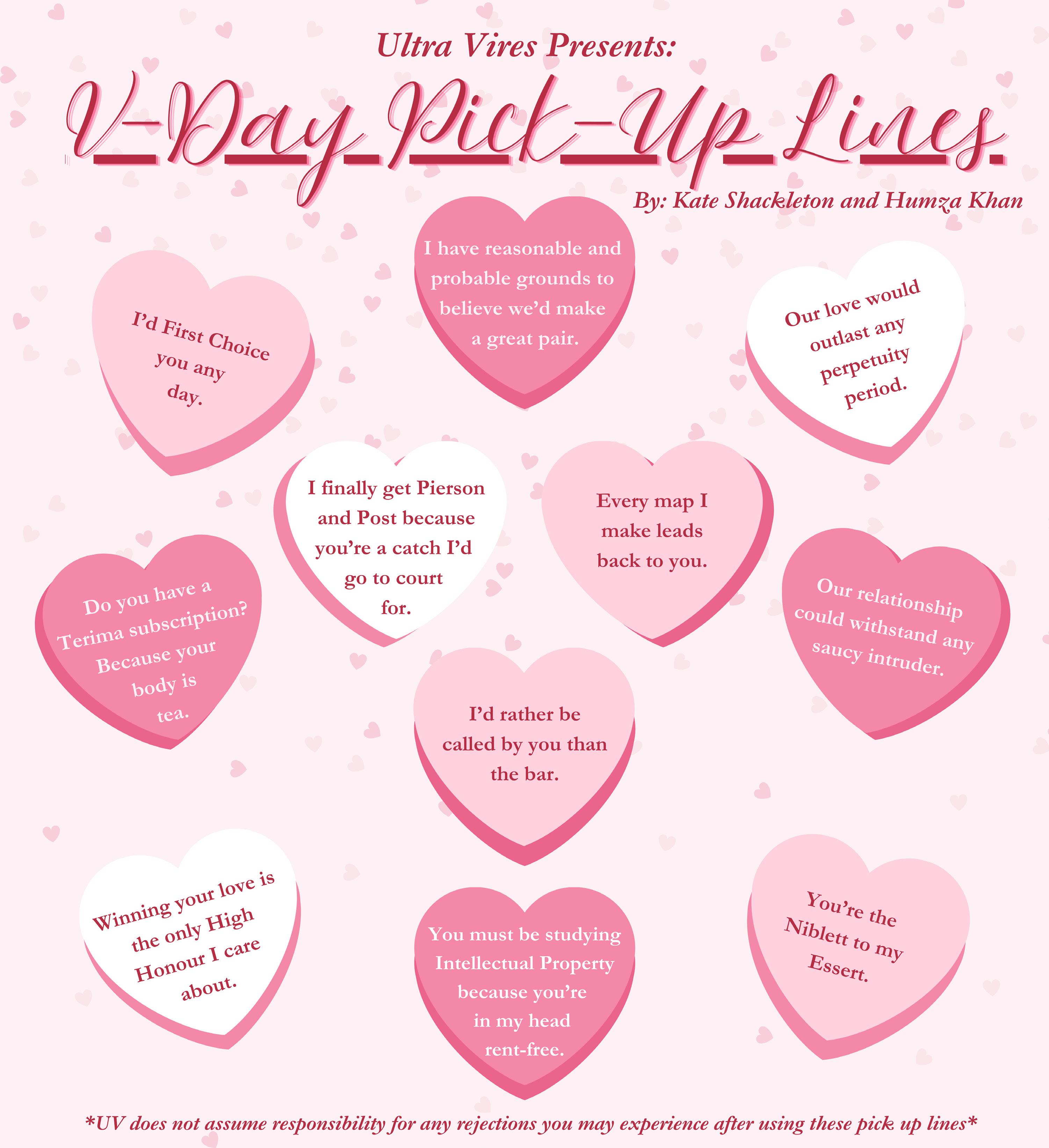 If between writing factums and intensive papers (or existing during the 1L recruit), you forgot about Valentine’s Day right around the corner, there’s no need to panic. Ultra Vires has got you covered. From finding the perfect pick up line, or the right rom-com to curl up to, look no further, our writers are here to serve.