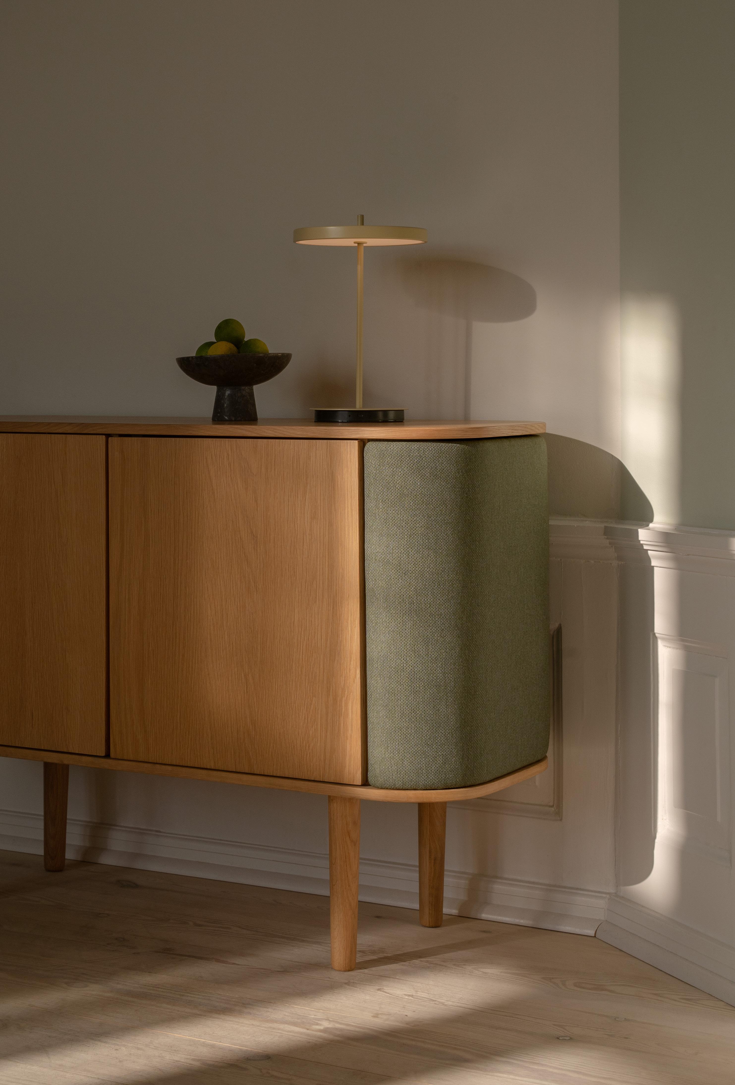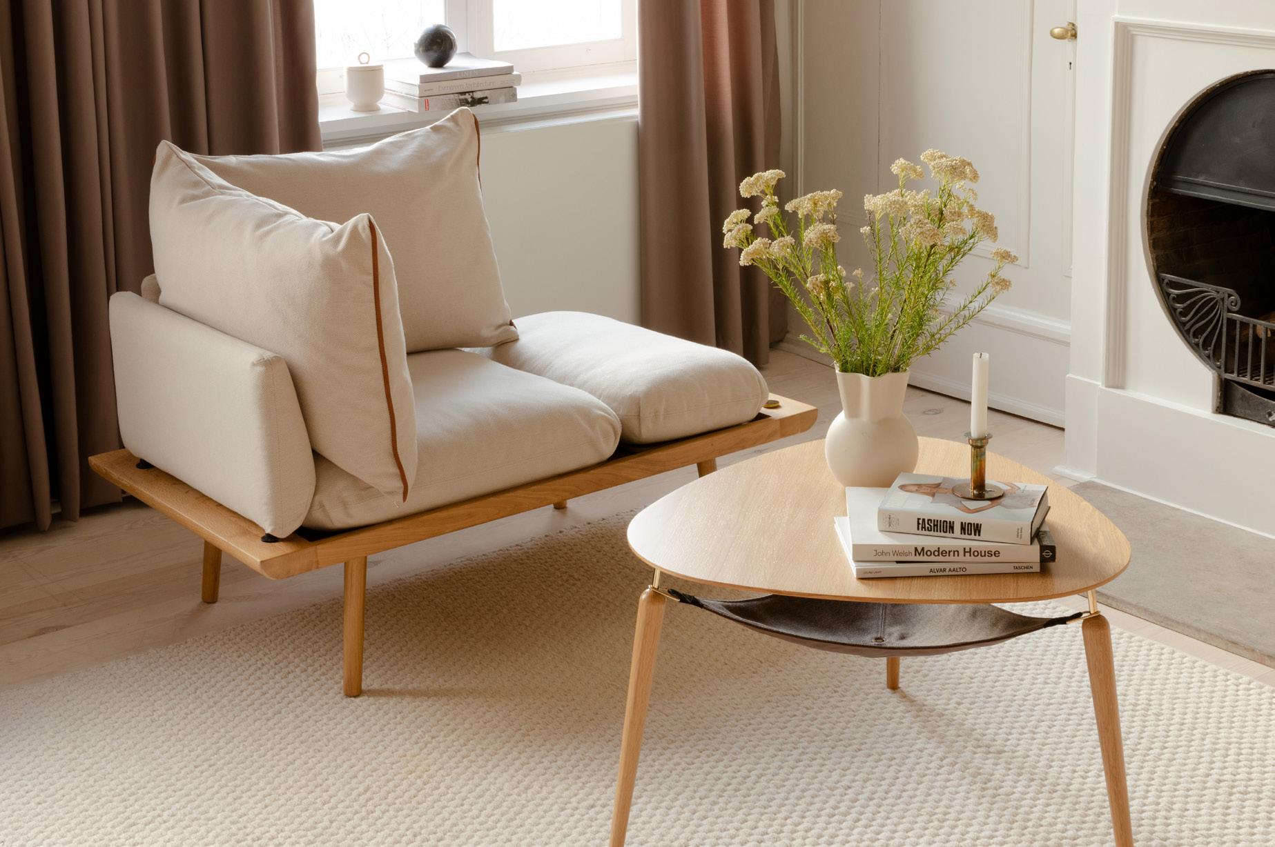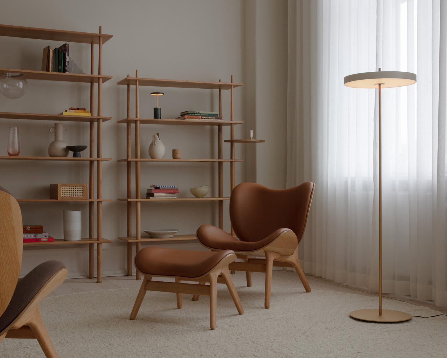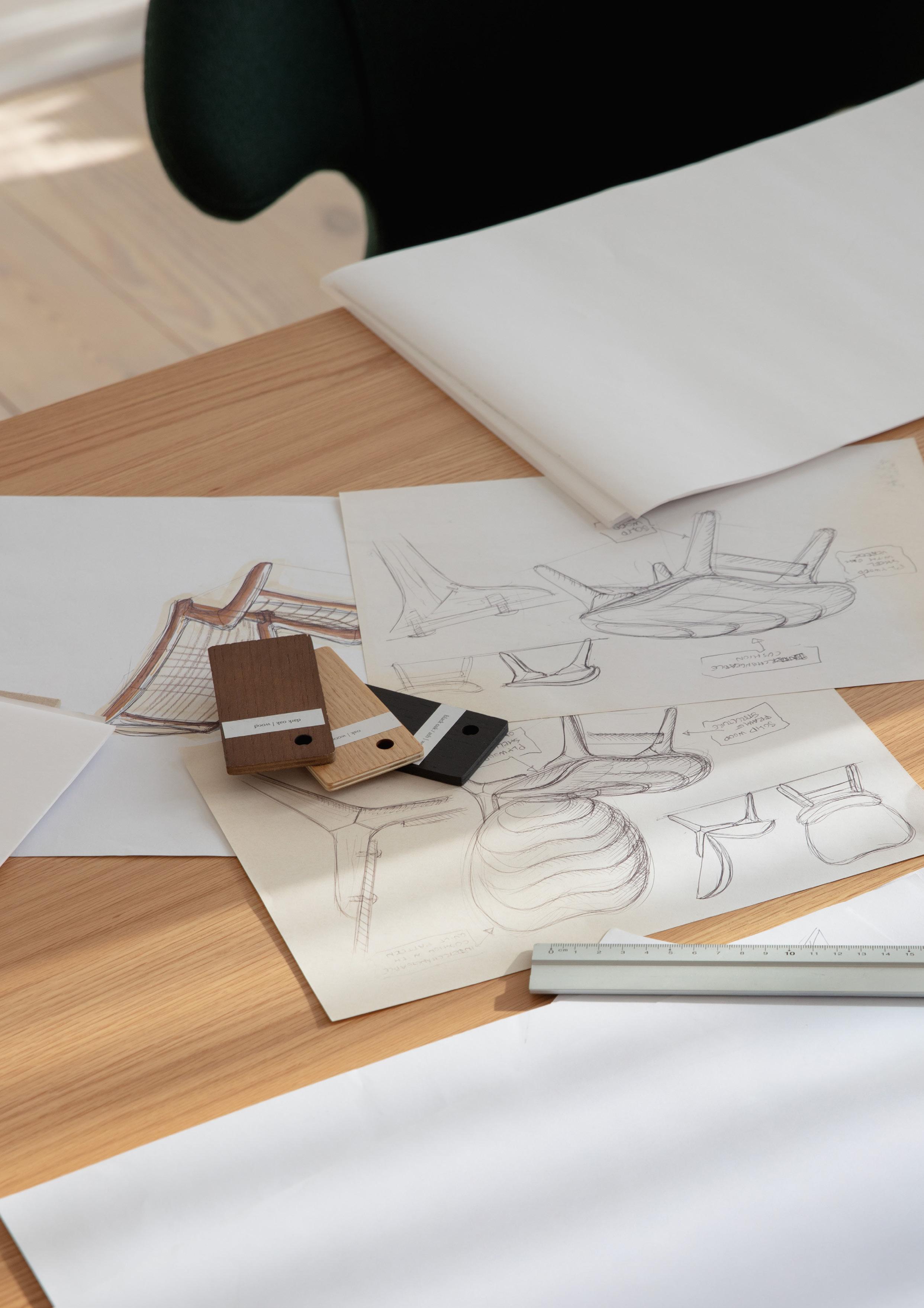 Materials: Solid oak, plywood, 100% recycled polyester and PUR Specifications: Fabric specifications on pages 198-207. Fabrics from Sørensen Leather and Kvadrat are made-to-order. Please contact info@umage.com