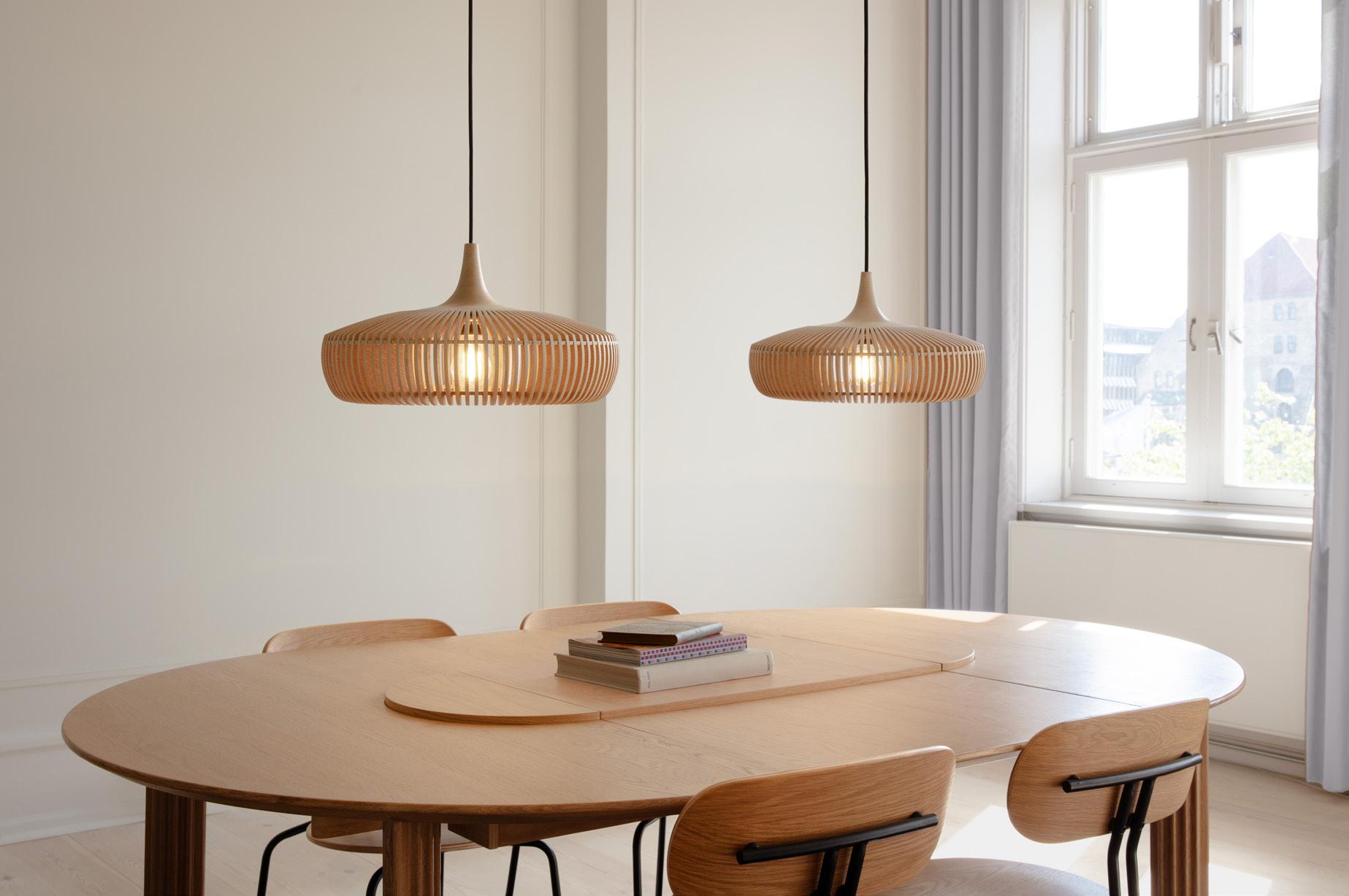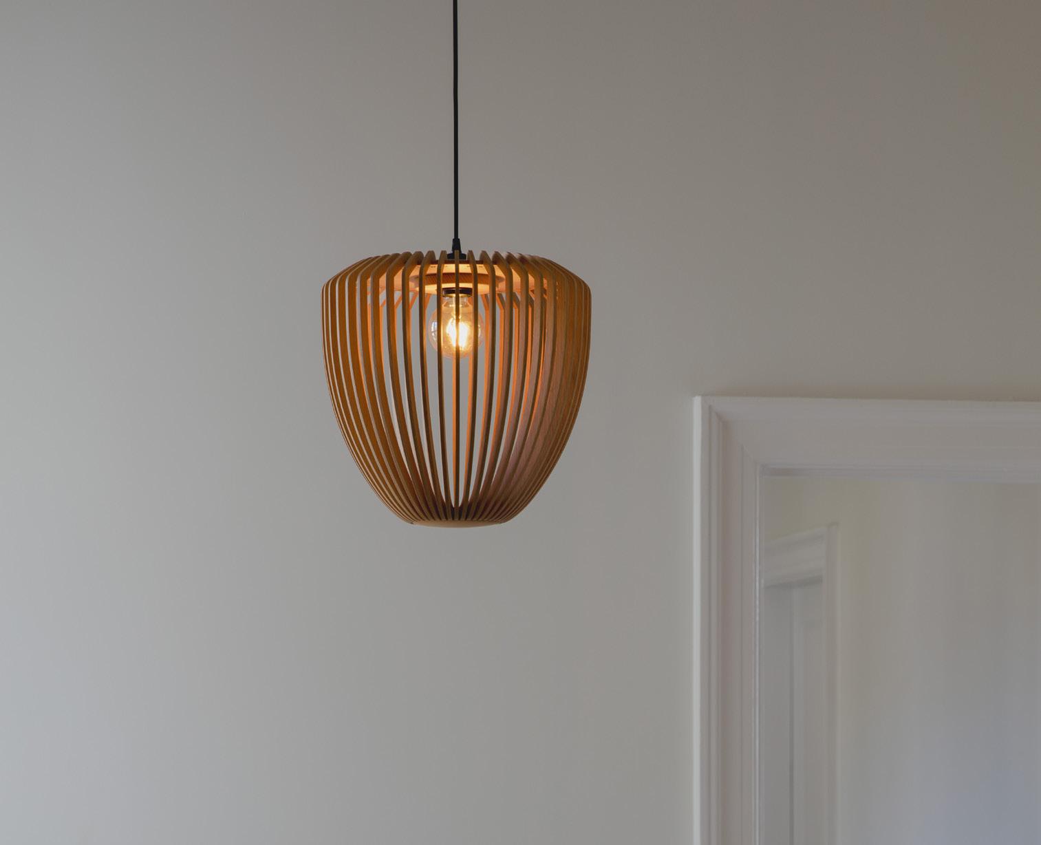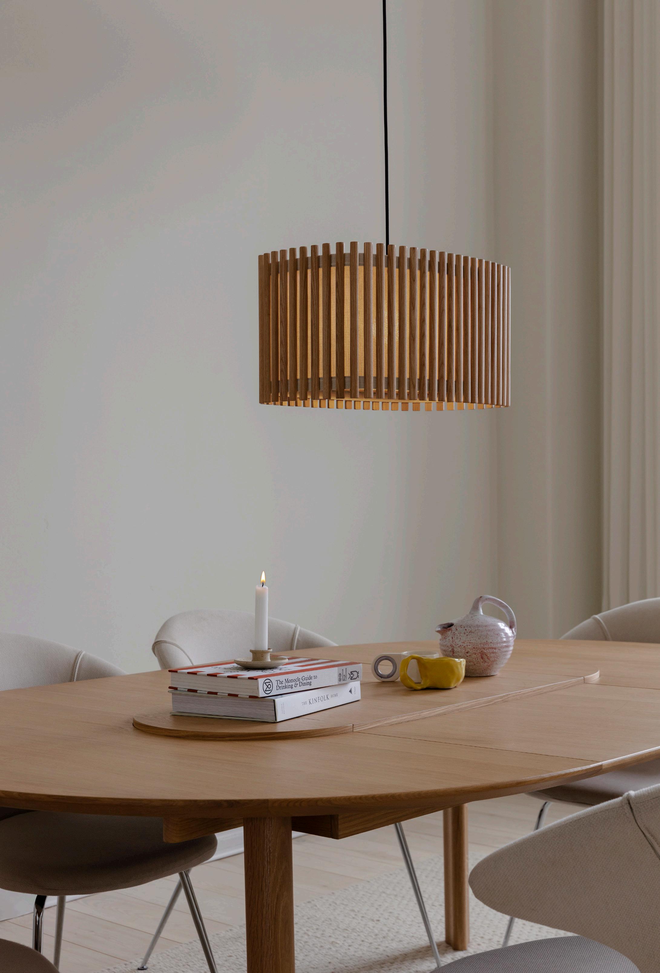 The Clava Wood collection celebrates the beauty of natural materials and precise craftsmanship through a sculptural lighting design. Defined by laser-cut wooden lamellae, each piece casts playful, atmospheric patterns of light that bring warmth and depth to surrounding spaces.