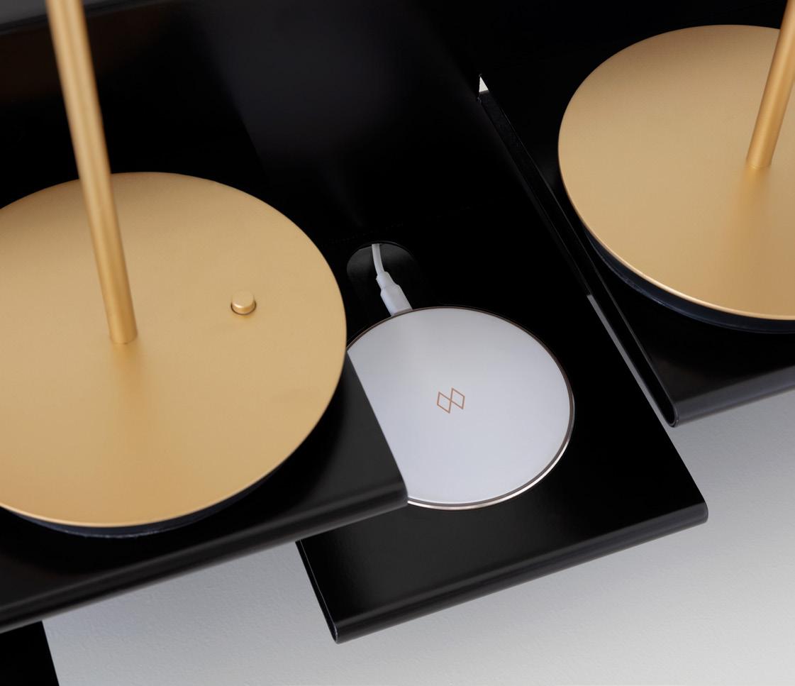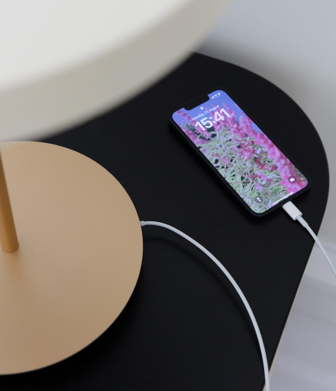 Specifications: Portable table lamp with built-in lithium-Ion battery, for indoor use only, USB-C cable and power adaptor incl., LED panel built-in, dimmable Compatible with Unifier wireless Qi-supported charger