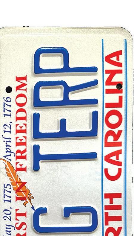 UMD-THEMED VANITY PLATES ARE THE HIGHWAY FOUR-LEAF CLOVERS WE LOVE TO SPOT. WE SHARE SOME OF THE BEST—AND THE TALES BEHIND THE TAGS. PG. 18