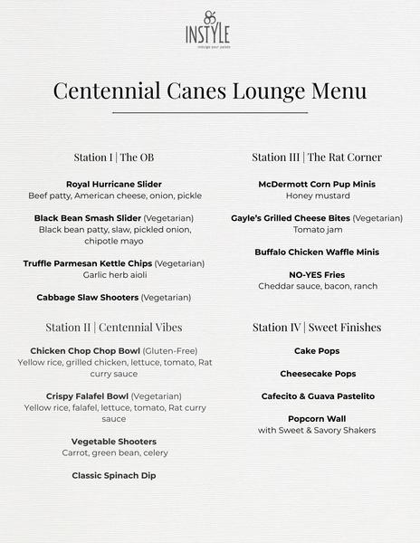 AcrosstheCentennialseries,InStyleCateringdevelopeddistinctmenuconceptsthatbroughteacheventto life,fromthePresident’sCelebrationtoHomecomingandtheCentennialCarnival.Eachmenureflectedthe uniqueenergyandidentityofitssetting.