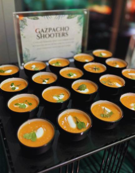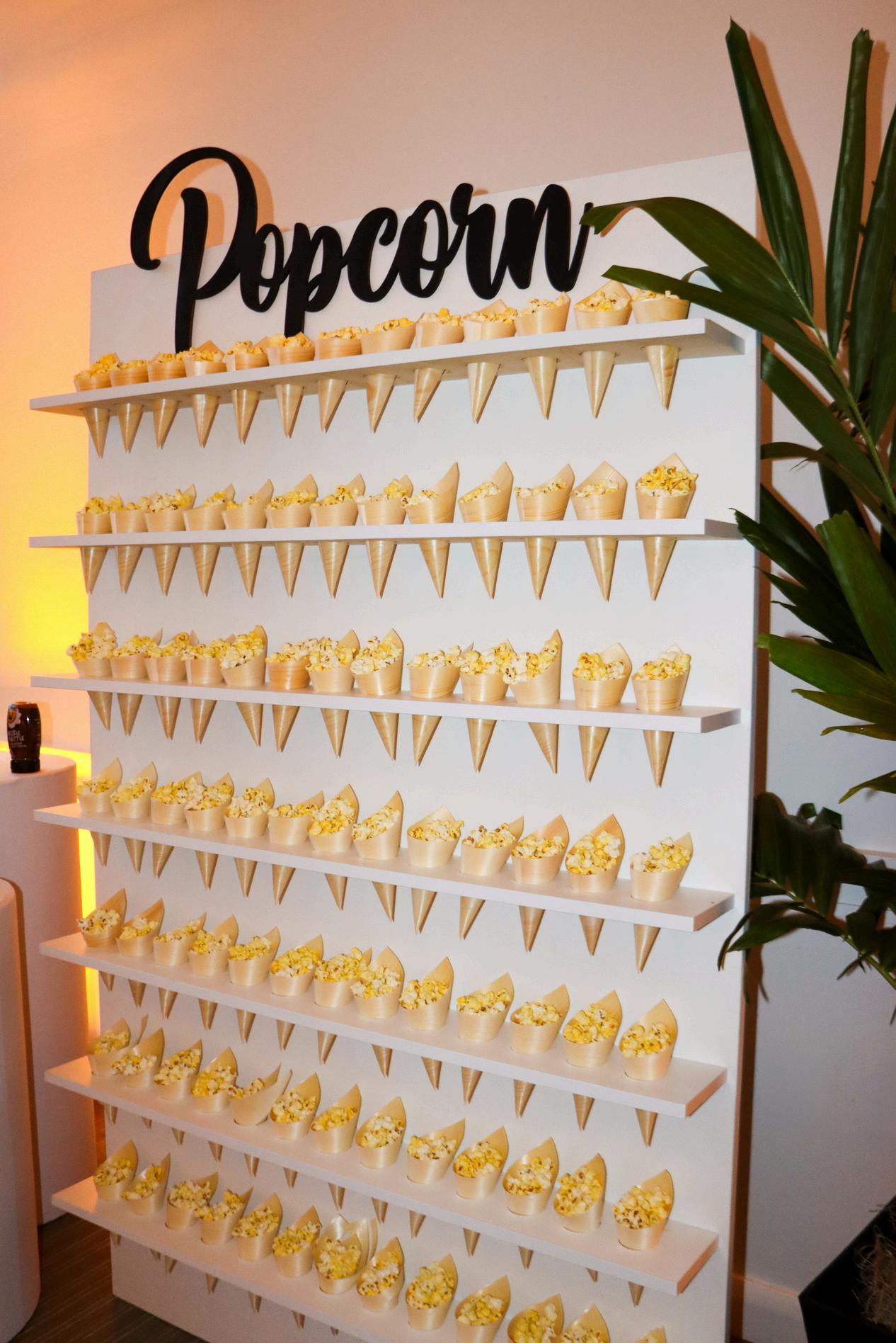 Bite-sizedportions,layeredpresentations,andinteractiveelements,suchasapopcornwalllinedwith minicones,encouragedvarietywhilemaintainingasteadyflowthroughouttheevent.Stationsbalanced efficiencywithpresentation,allowinggueststomoveseamlesslywhileengagingwitheachoffering.
