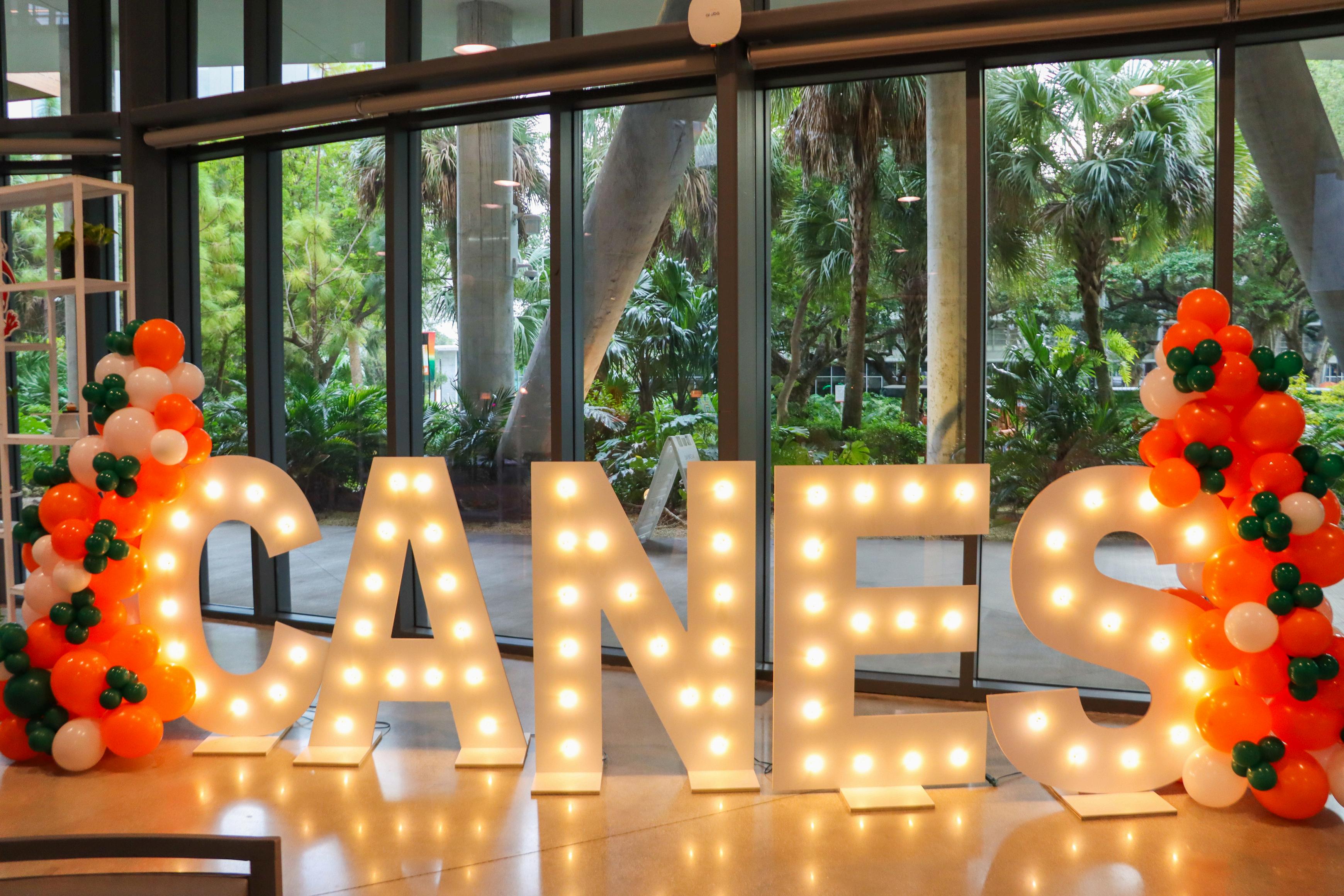Naturaltextures,warmwoodtones,andlushgreeneryframedeachstation,whileboldUMcolorsandclean signagemaintainedaconsistentvisualidentityacrossspaces.ConceptsliketheCaneShackbroughtarelaxed, tropicalenergytolife,blendingcampusspiritwithamodernMiamiaesthetic.