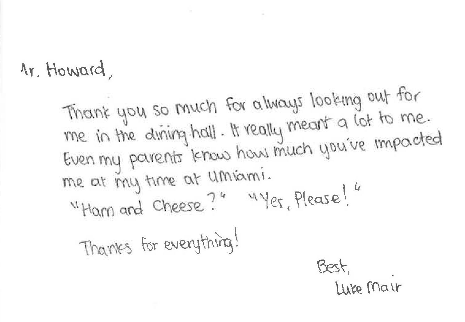 College is a nerve-racking and stressful time for many, and UM’s vast campus feels a bit less daunting with Howard turning breakfast into a familiar, comforting moment. A note from an out-of-state student read, “College can be overwhelming or scary at times, and knowing there is someone in your corner paying attention who genuinely cares makes all the difference. We appreciate you so much!”