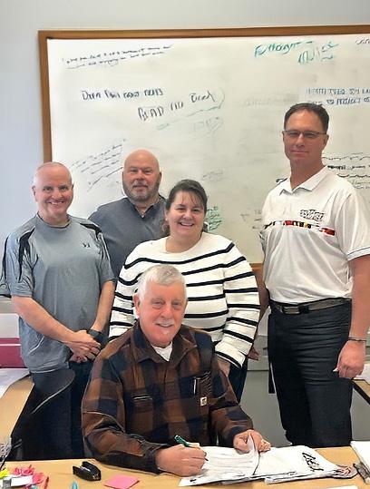 (left to right): Tim Huntt and Eddie Goodwin, Charles County VFA; Mary Ann Arhar and Edward “Eddie” Rachinskas, SMRTC; and Robert “Bob” Rose (seated), MFRI Certification Manager.