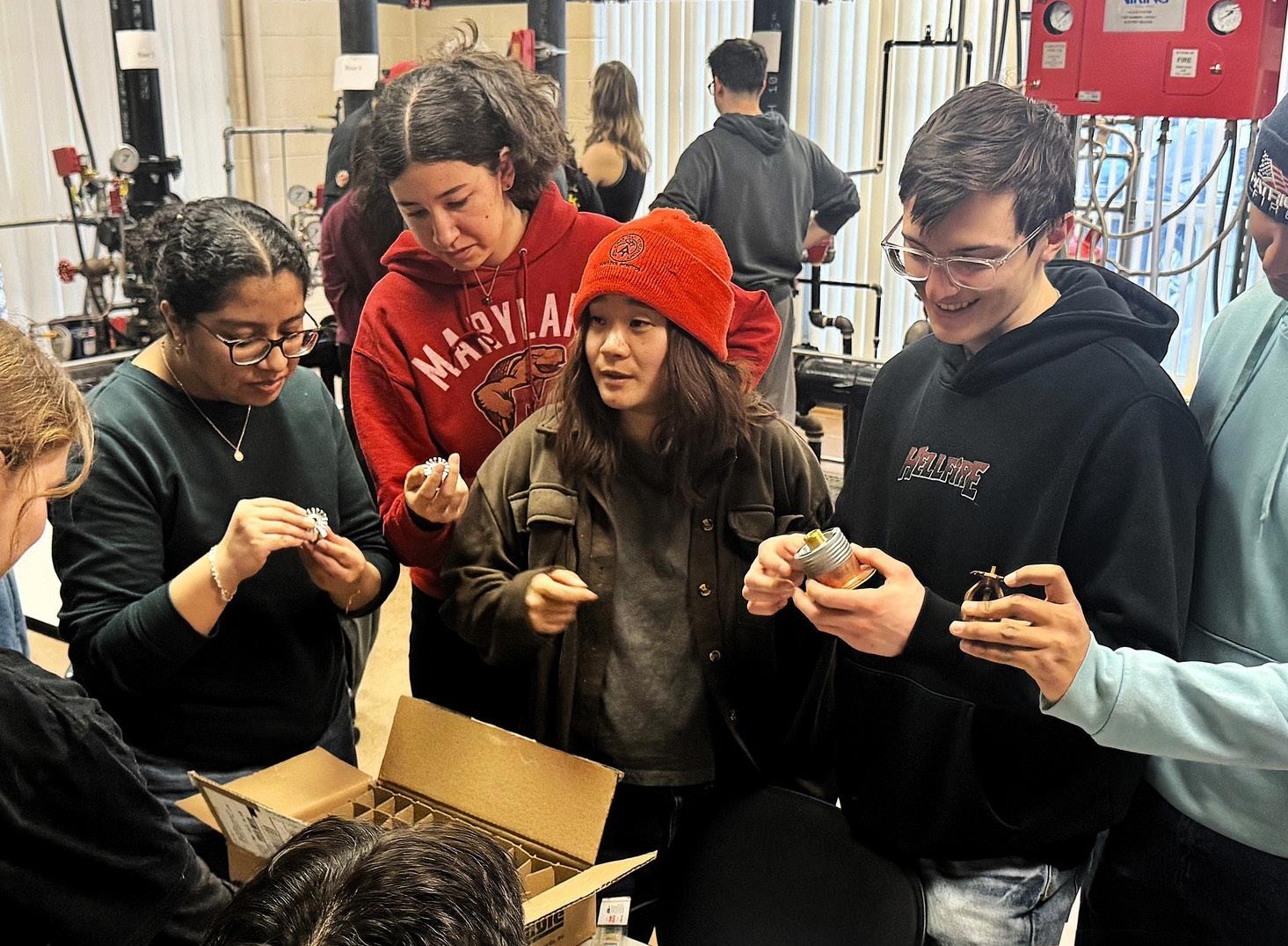 photos top left and right: Eighteen junior-year students from the University of Maryland Fire Protection Engineering program took a field trip to MFRI headquarters to study fire sprinkler and pumps systems up close as part of their Water-Based Fire Protection Systems Design course.