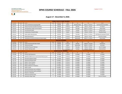DPHS - Tentative Course Schedule - FALL 2026