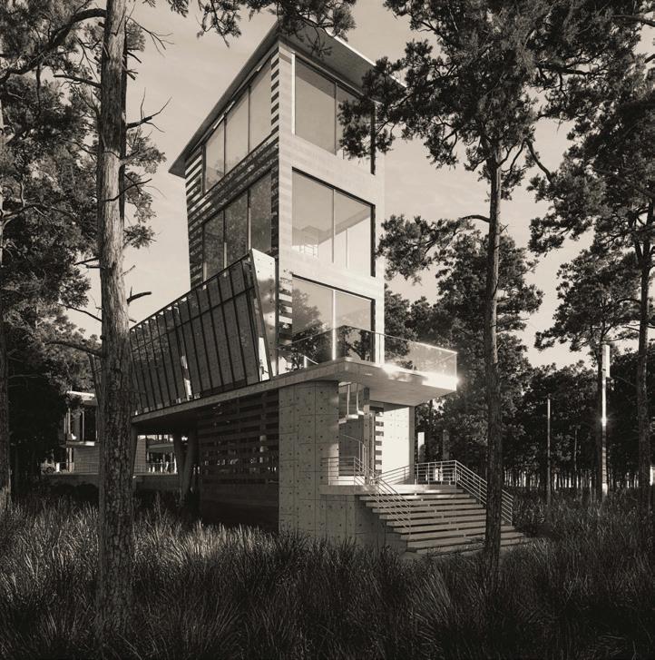 Greg’s design philosophy is deeply rooted in his lifelong connection to the natural beauty of Florida’s Emerald Coast. Having moved to 30A at sixteen, his experiences exploring the beaches, dune lakes, and surrounding landscape shaped a strong appreciation for preserving the area’s unique character. His work reflects this commitment, drawing the natural elements of each site into the design to create homes that balance aesthetic beauty with the practical needs of daily life. Guided by the lifestyle of future residents and the integrity of the land, Greg designs structures that frame nature, protect the environment, and enhance the living experience. Greg’s goal was to create a hybrid office, private residence, and gallery that offers clients a fully immersive experience — a place where they could not only see architecture but live it.