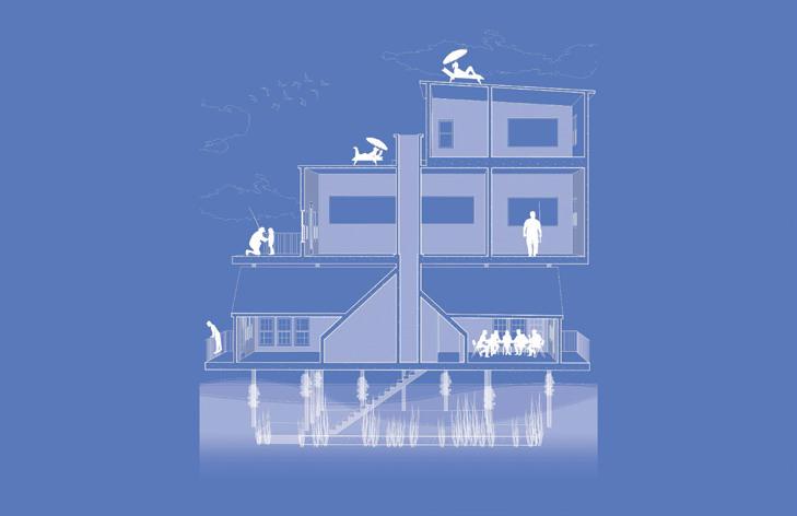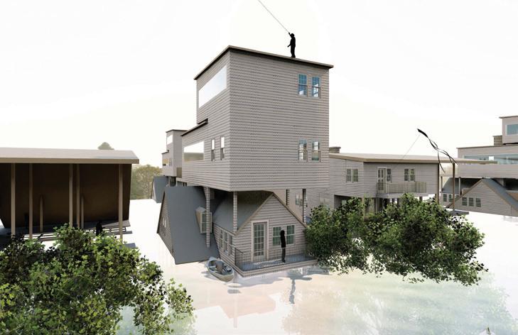Climate change and flooding will dictate the future of coastal architecture. By integrating cultural elements like Cape Cod’s central chimneys and weathered shingles, adaptive architecture can take on distinctive designs derived from coastal communities. Increasing flooding is becoming the new norm, forcing relocation, altering landmarks, and accelerating coastal erosion. As structures collapse and villages are abandoned, coastal communities are losing their connection to their heritage. Housing designed for water is not a new concept, but many lack cultural influence and vernacular architecture. New proposals incorporate distinct architectural styles and dedicated community spaces, preserving cultural identity often overlooked in past designs.