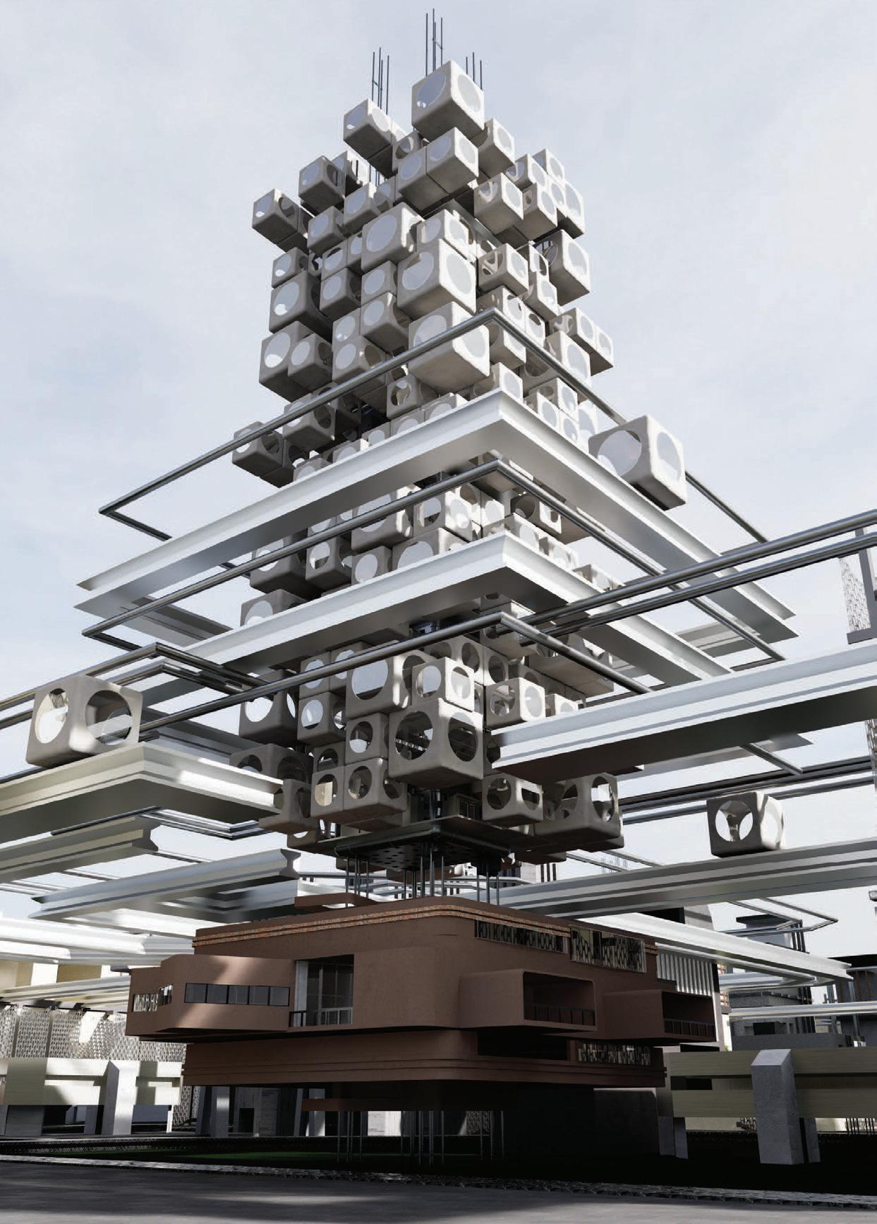 Urbanistic metaphor is a design approach where a building is imagined as a vertical city — capturing the diversity, complexity, and layered interactions of an actual urban landscape. Rather than viewing the structure as a single-use, uniform object, it is composed of distinct zones (such as neighborhoods, streets, and plazas) stacked vertically, blending program types, circulation, and public spaces to evoke an urban experience. The New Chicago School of Architecture challenges the conventional,