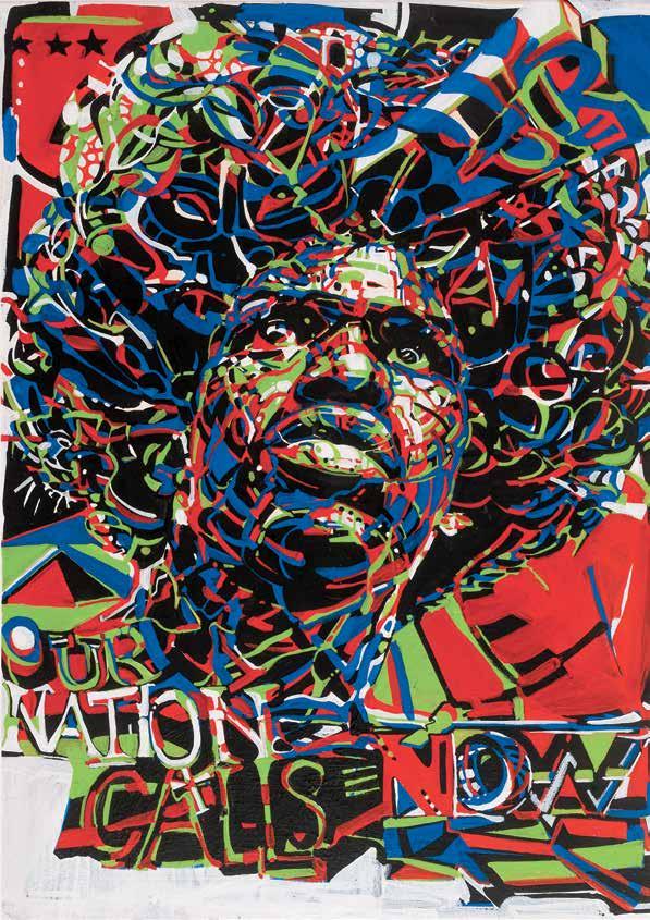 —MALCOLM X, 1964Prophet, 1978, acrylic on board, 40 x 30 inches, Collection of Dr. Gregory and Katherine Demopulos LESLIE KING HAMMOND, PhD PROFESSOR EMERITA, MARYLAND INSTITUTE COLLEGE OF ART PHOTO BY DAVE ROBACK