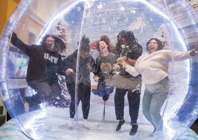Un poco de la tradición del campus: Gánate la camiseta de campeón intramuros. Juega BINGO. No pises el sello. Ve a deslizarte en trineo en Brompton. Celebra la Semana ASPIRE. Asiste al baile de graduación. Salta a la fuente al menos una vez antes de graduarte.