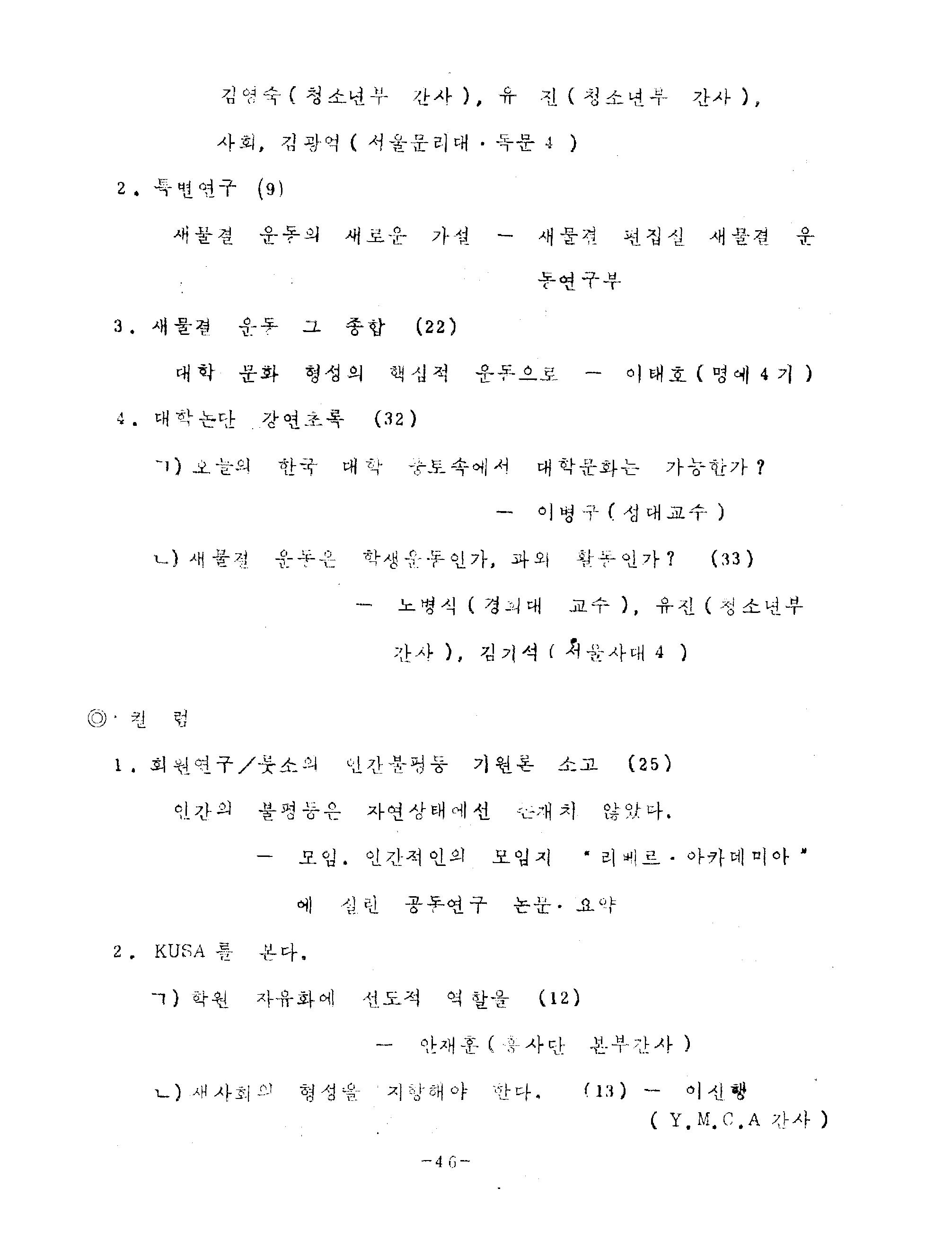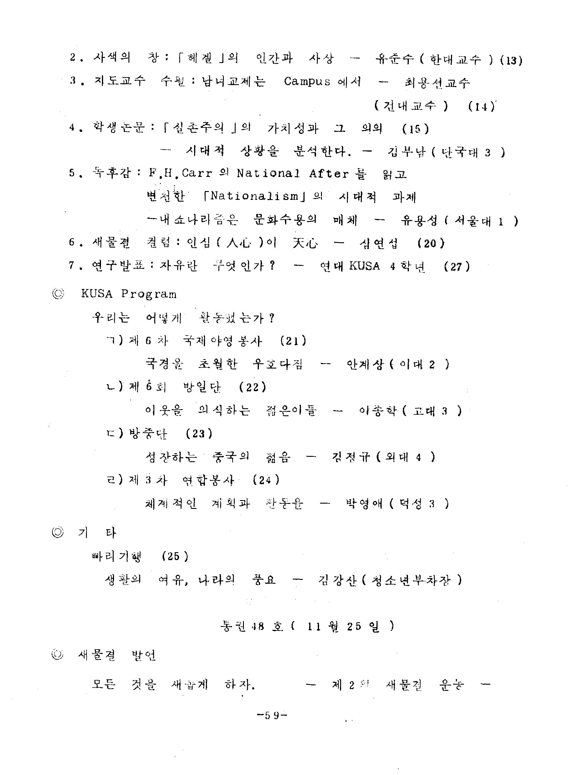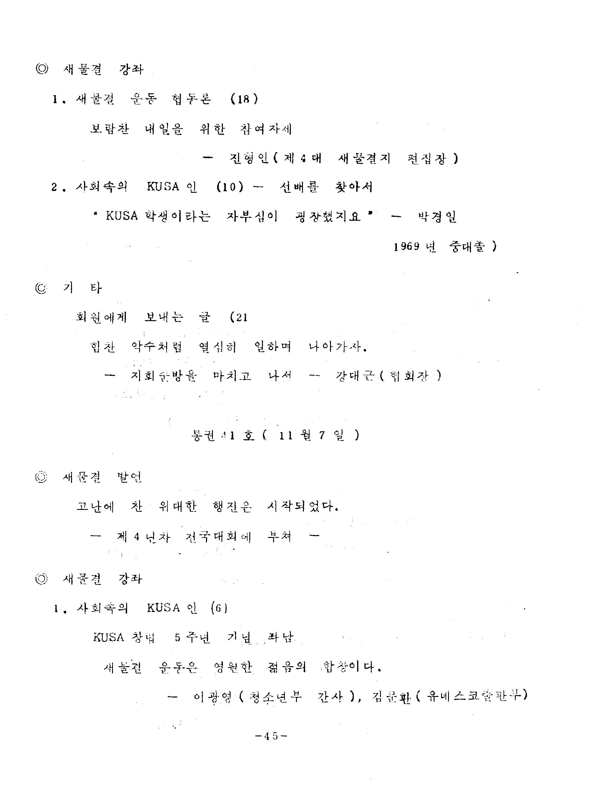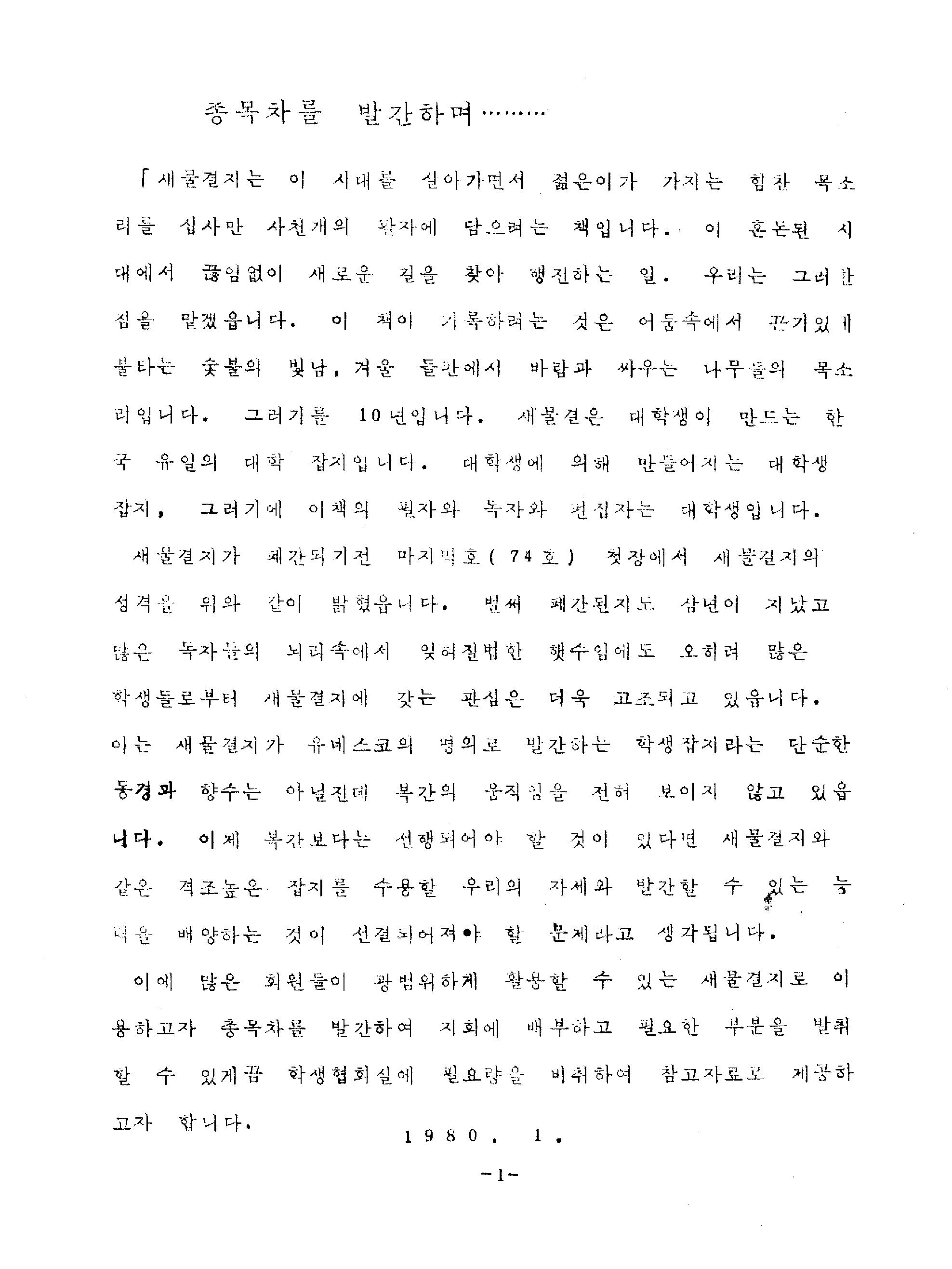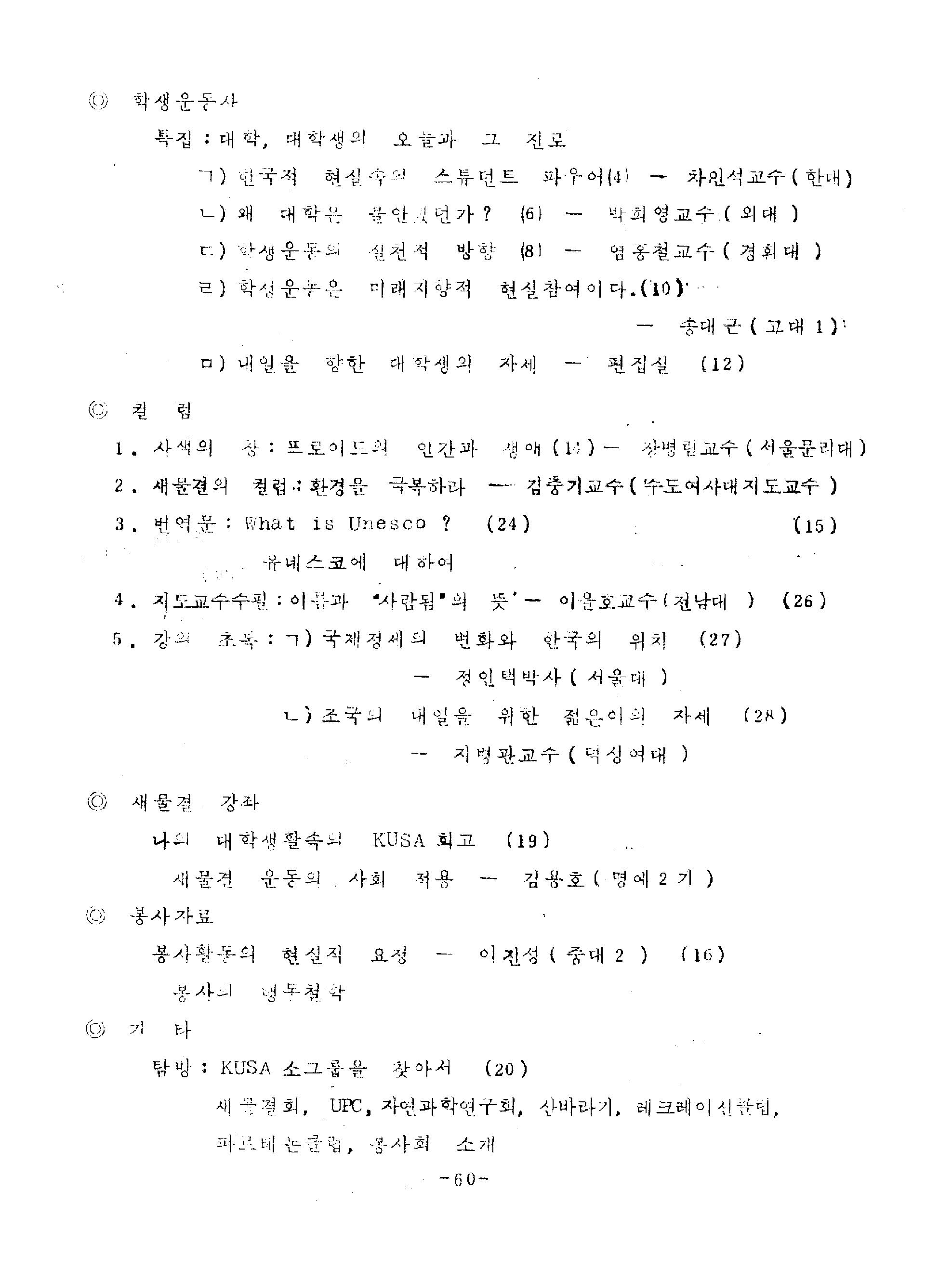 <새물결지 KUSA Monthly>총목차 (1호~74호)