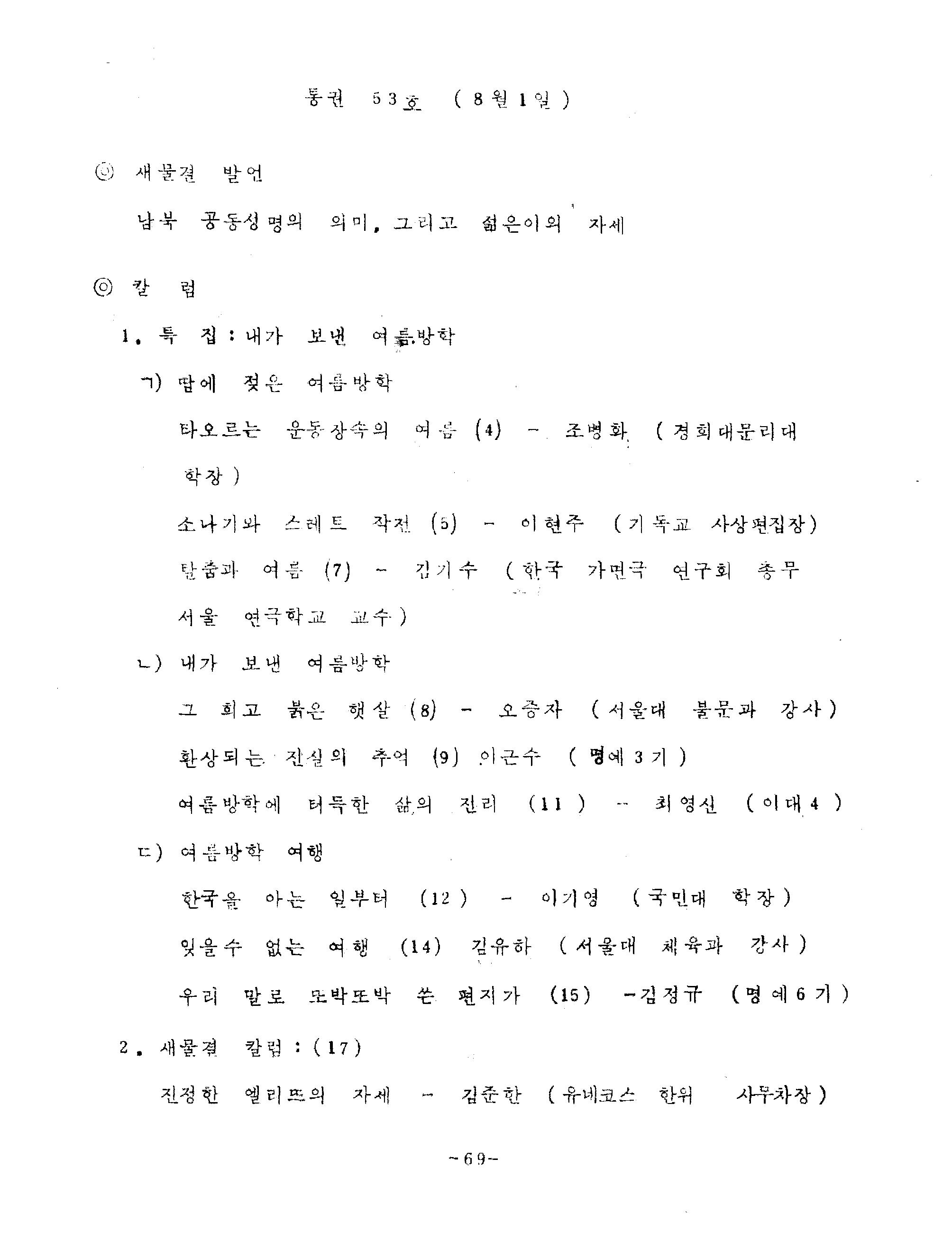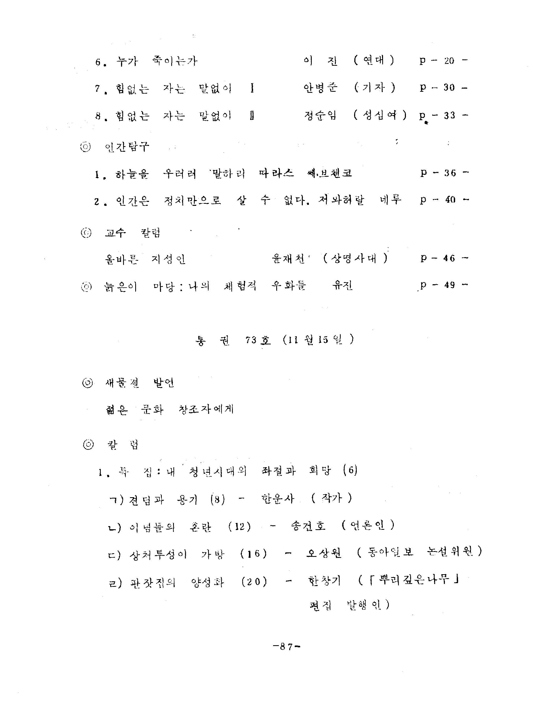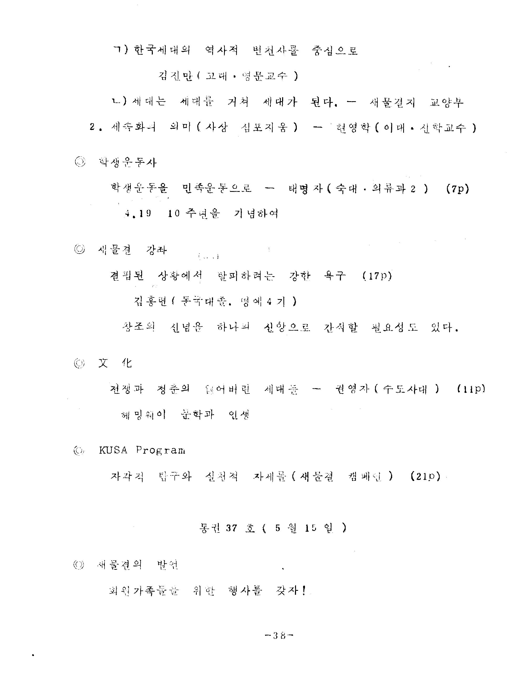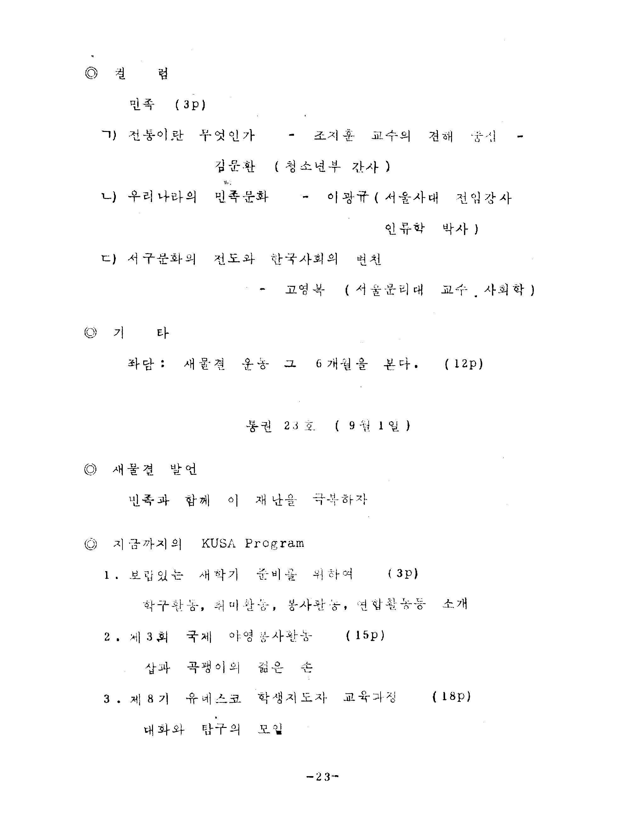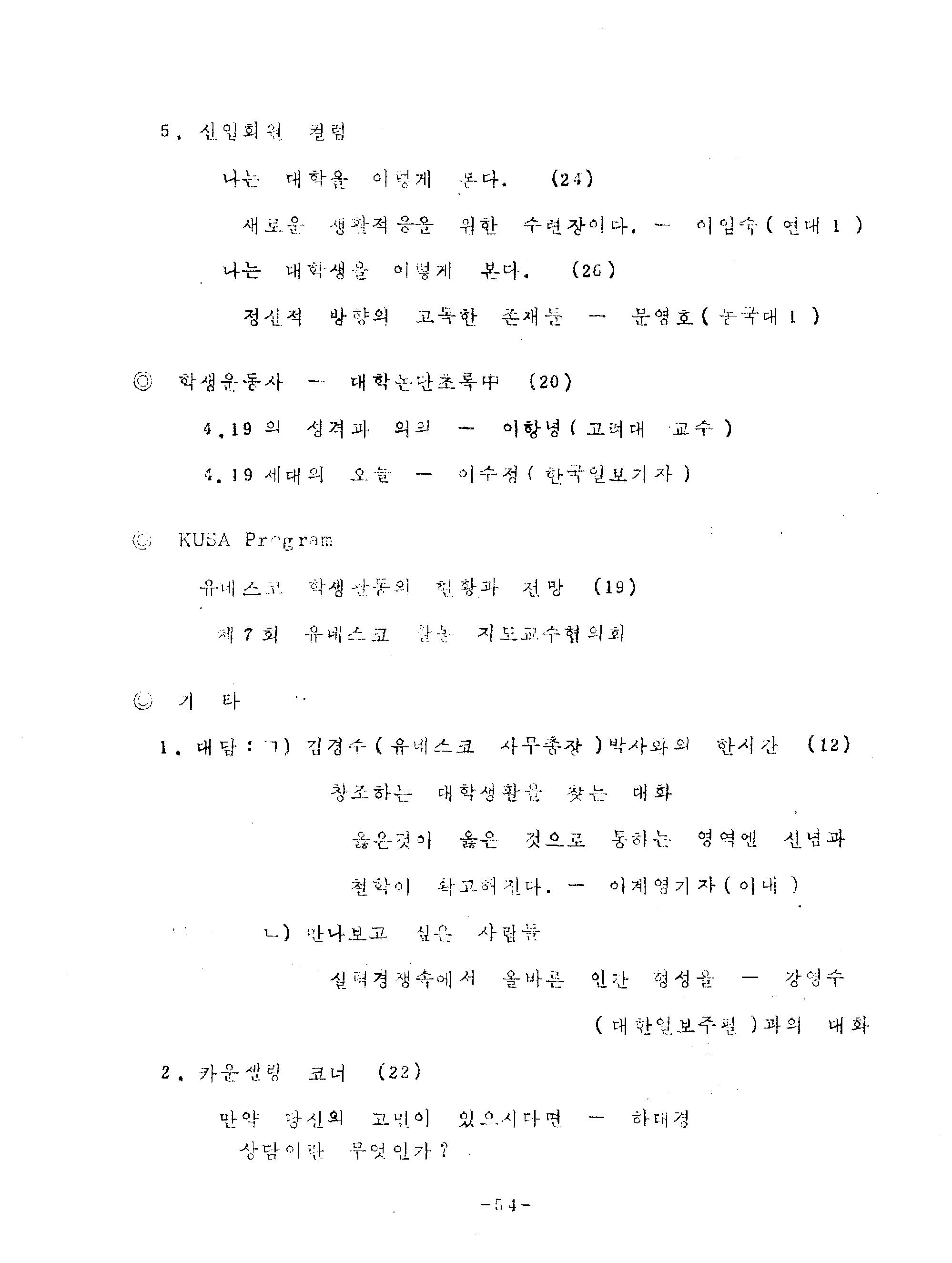 <새물결지 KUSA Monthly>총목차 (1호~74호)