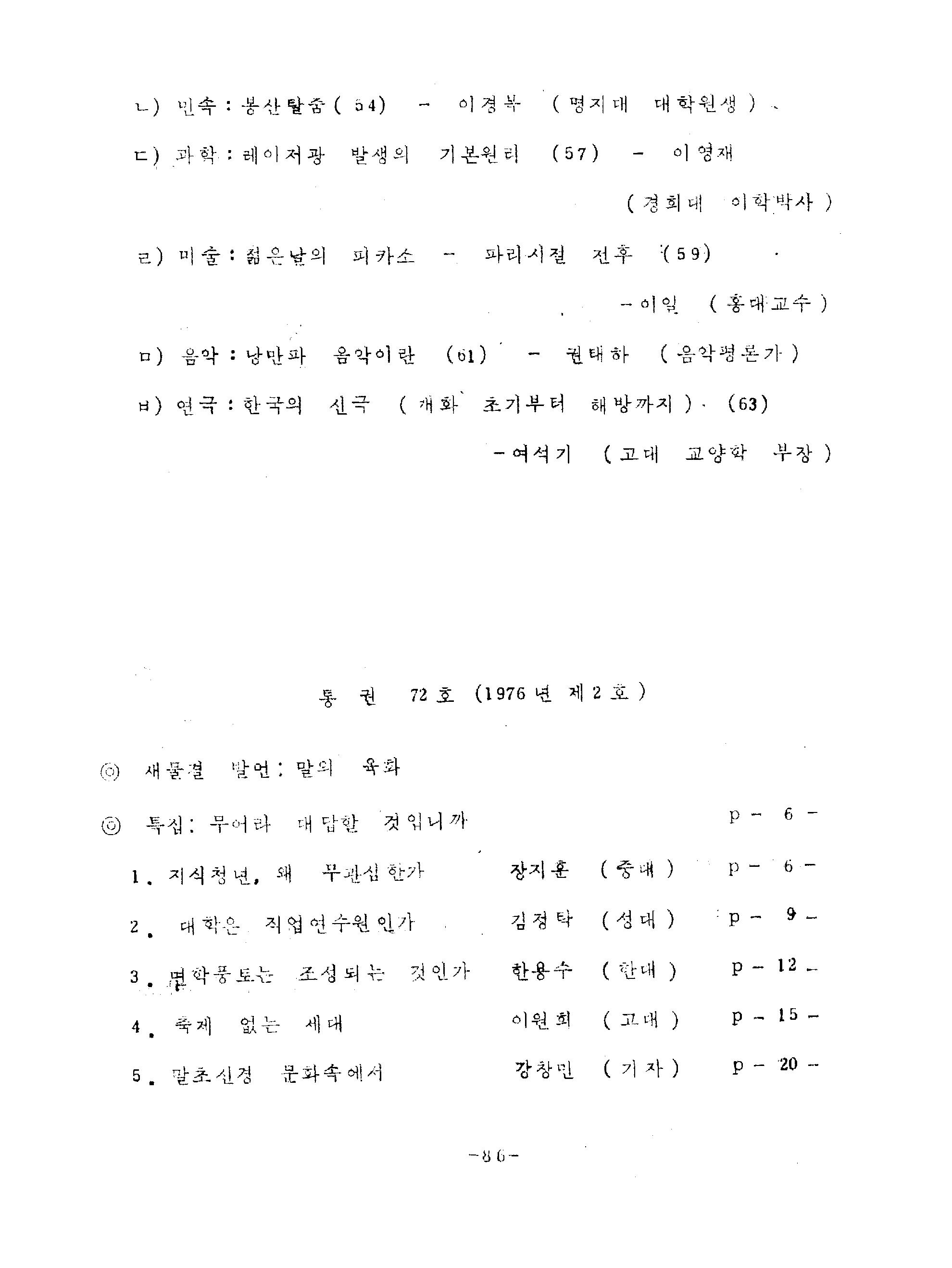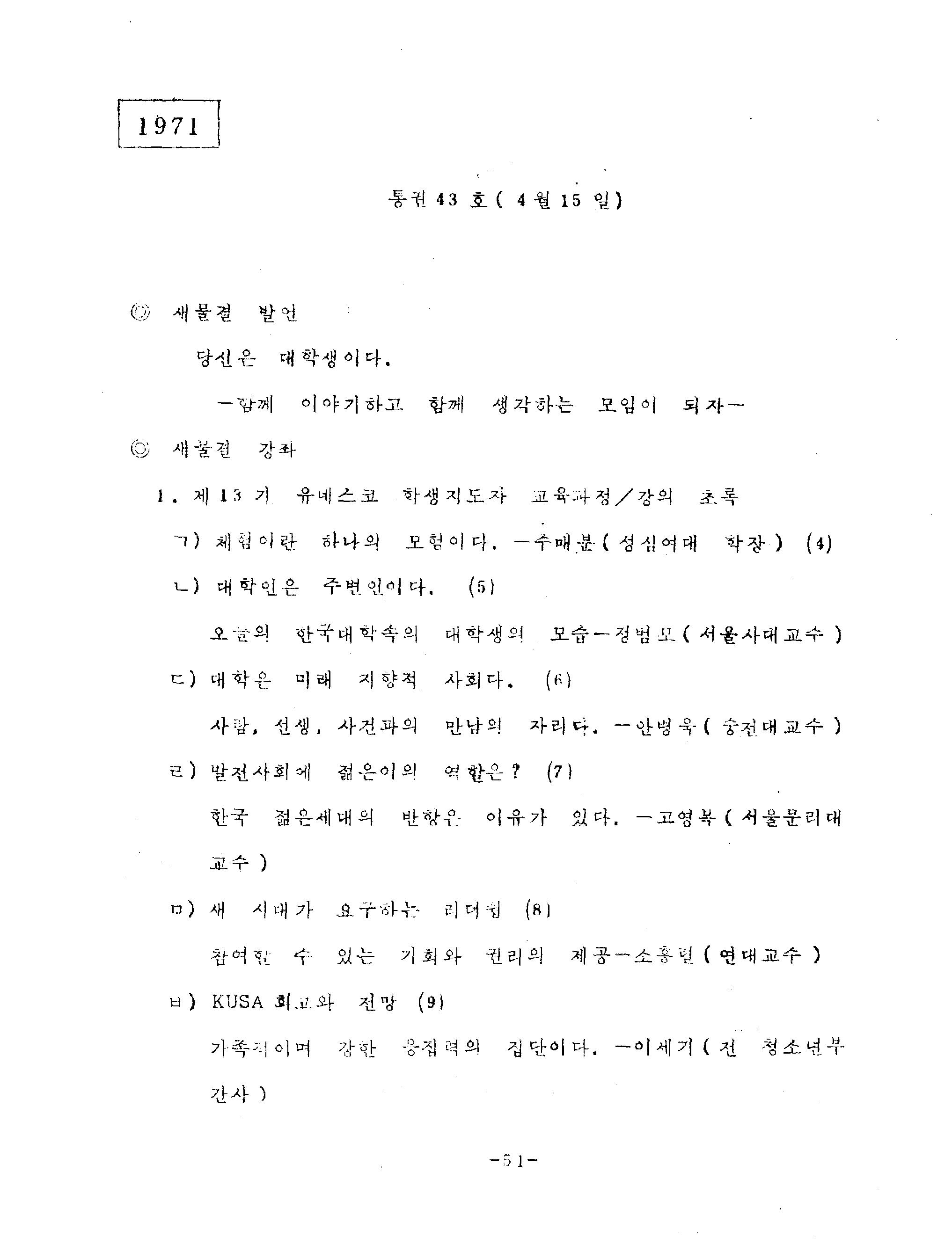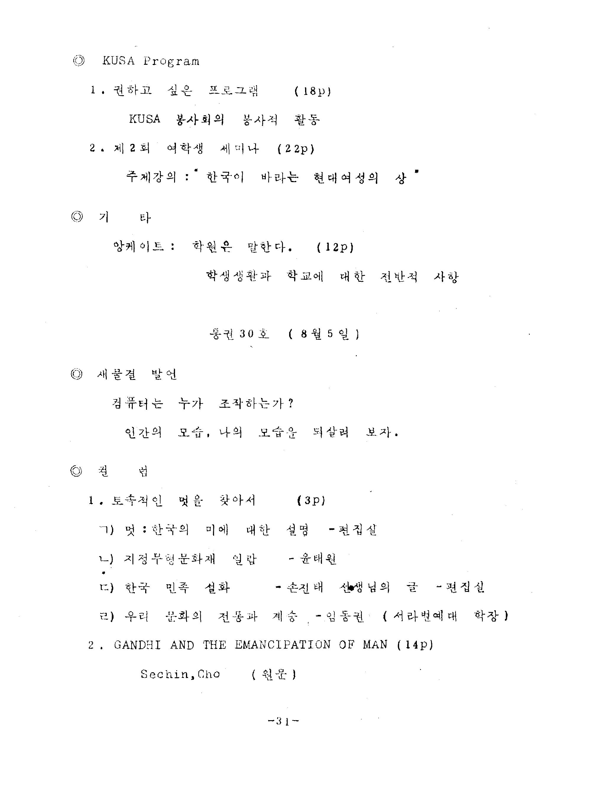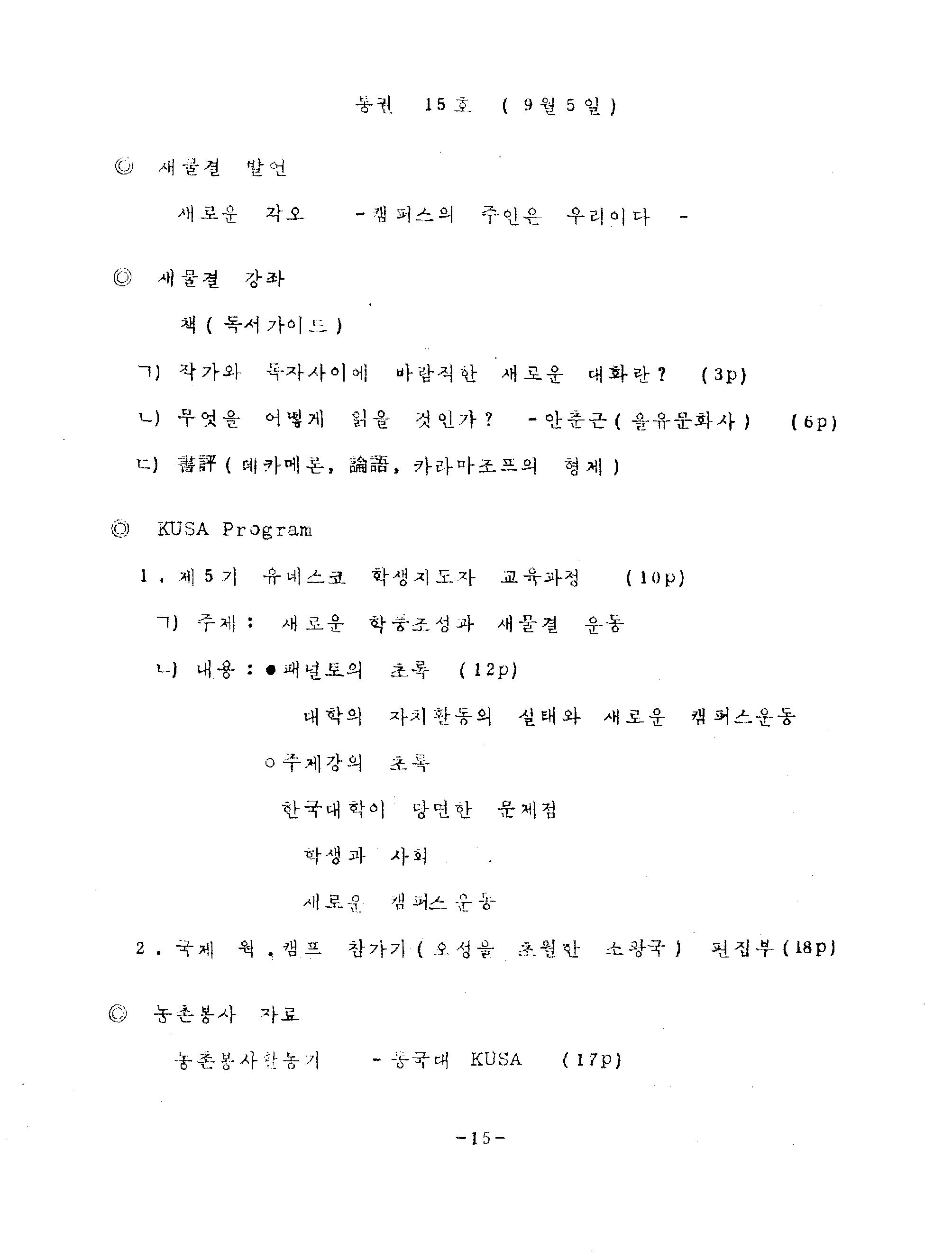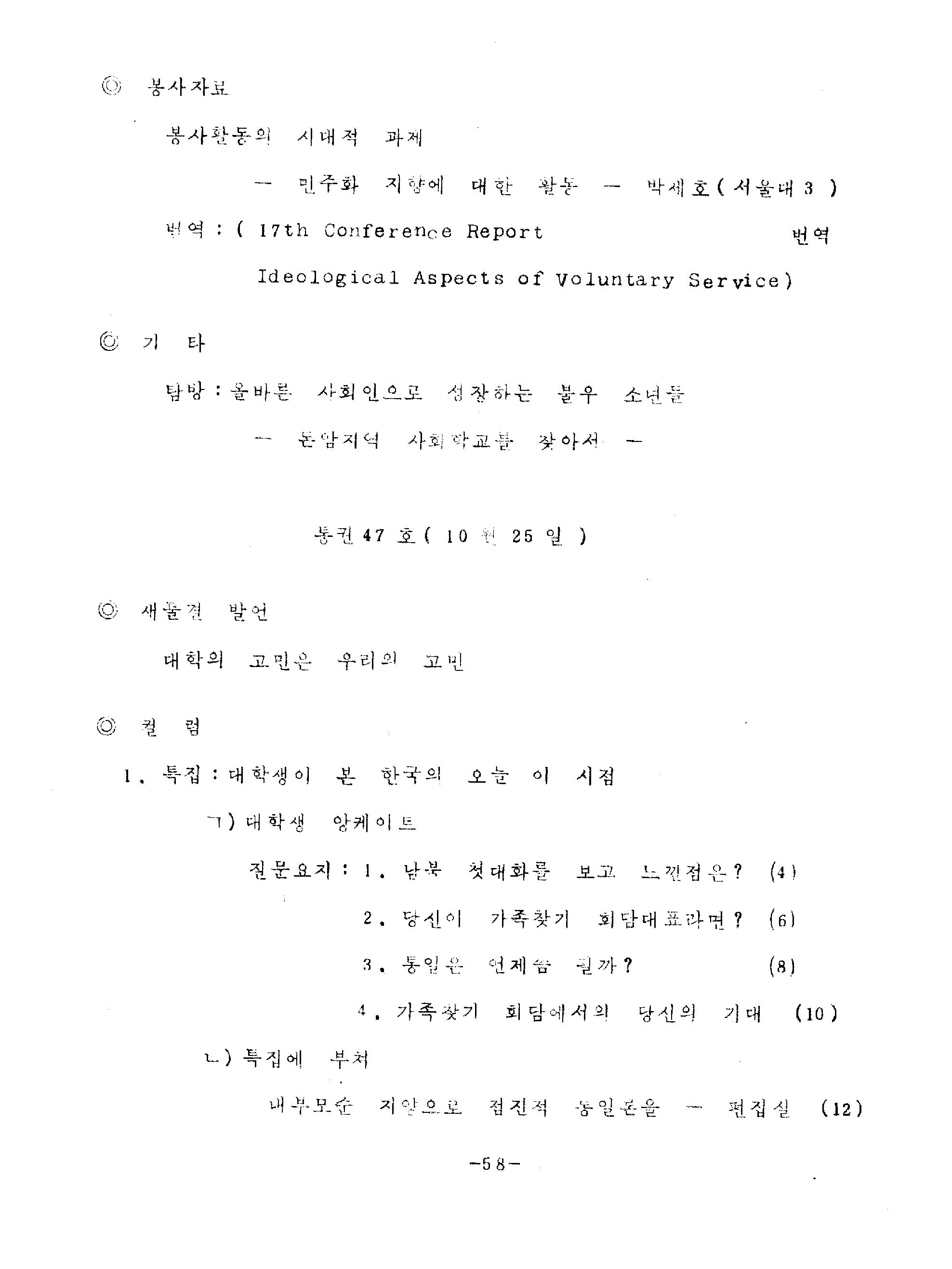 <새물결지 KUSA Monthly>총목차 (1호~74호)