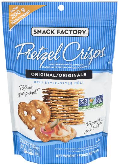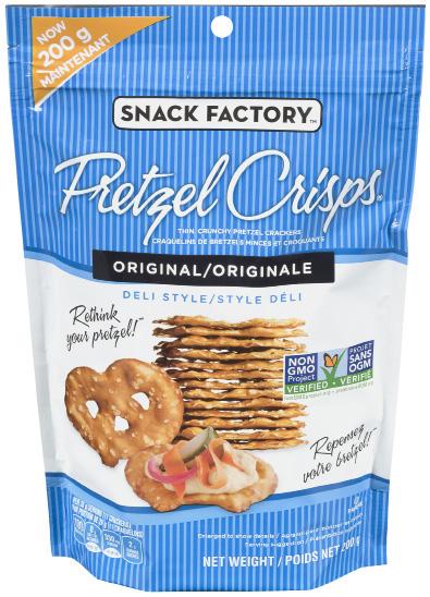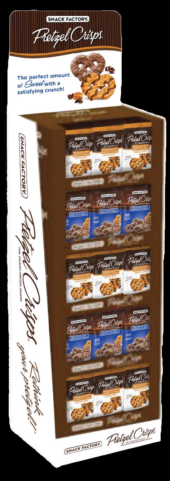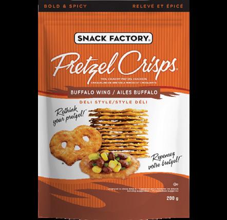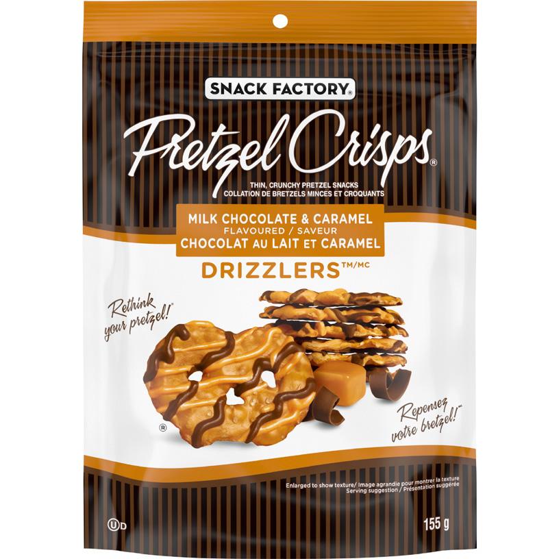 Delightfully crunchy Snack Factory® Pretzel Crisps® are drizzled with the delicious flavours either just milk chocolate or a combination of caramel & milk chocolate for just the right amount of sweet indulgence.