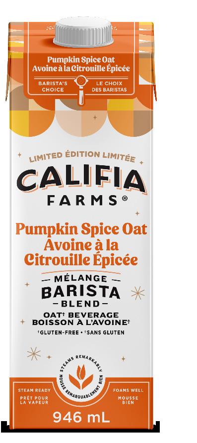 Le lait d’amande crémeux se mélange à la purée de citrouille, à la cannelle, au gingembre et à la muscade pour créer une crème à café décadente qui tourbillonne doucement dans le café chaud ou glacé.
