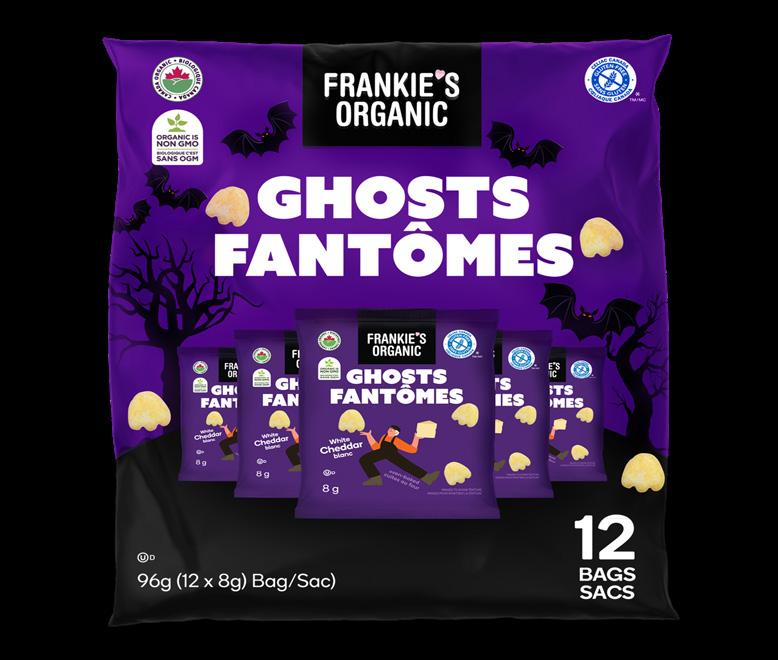 Frankie’s White Cheddar Ghosts are are the ultimate Halloween treat! They are organic snacks made with sprouted grains (quinoa and rice) providing flavour and texture that makes this product stand out.