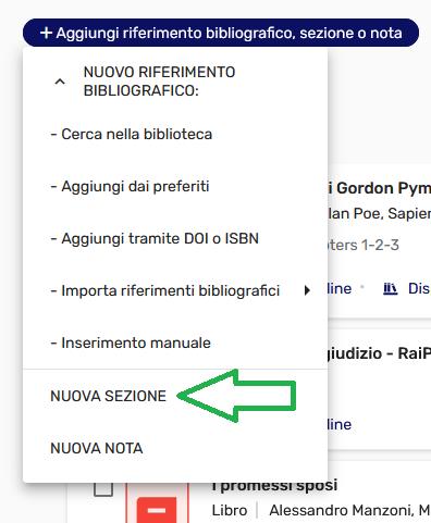 1. Per aggiungere una sezione, selezionare “Aggiungi riferimento bibliografico, sezione o nota”