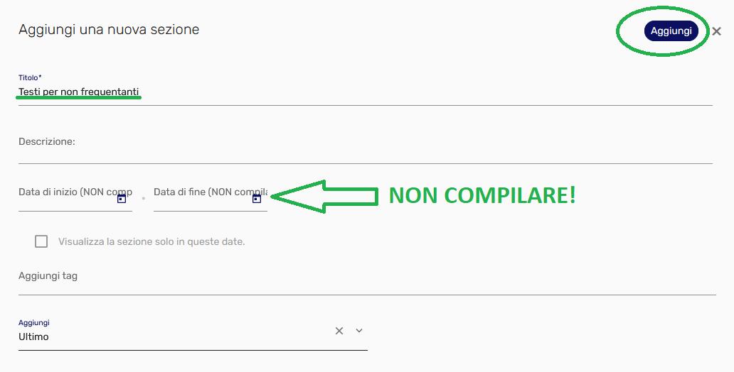 3. Assegnare un Titolo alla sezione (es. Testi per non frequentanti) e cliccare su Aggiungi
