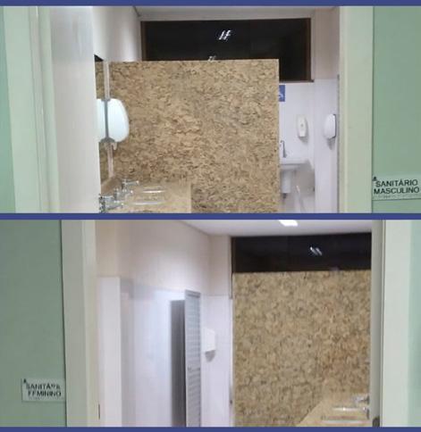 Sinalizar a localização dos banheiros, masculino e feminino.